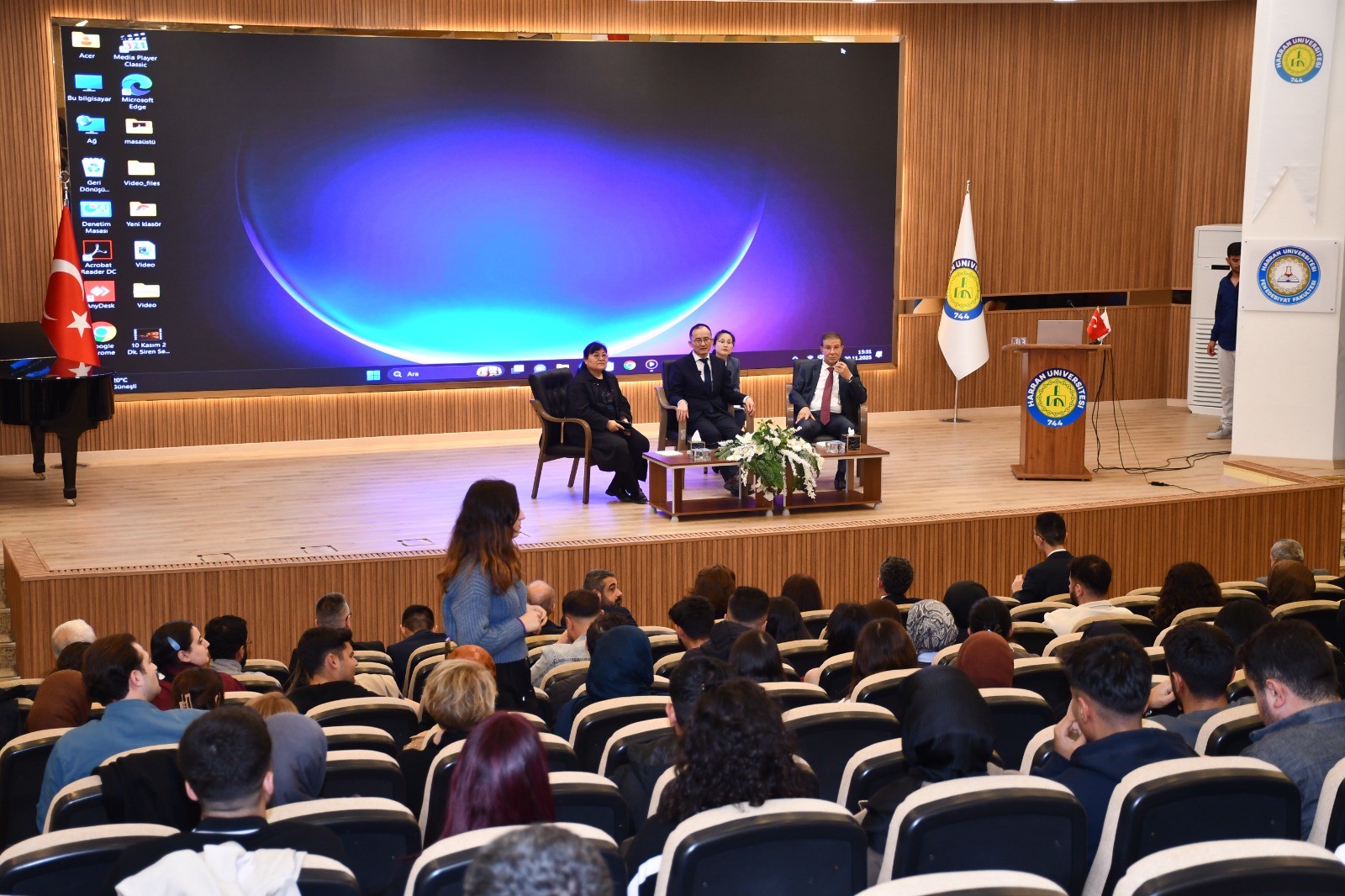 Programın bir diğer durağı Fen Edebiyat Fakültesi Konferans Salonu oldu. Burada öğrencilerle buluşan Büyükelçi Ciang Şüebin, Türkiye ve Çin arasındaki eğitim, kültür ve bilim alanlarındaki ilişkiler üzerine konuştu ve öğrencilerin sorularını yanıtladı.