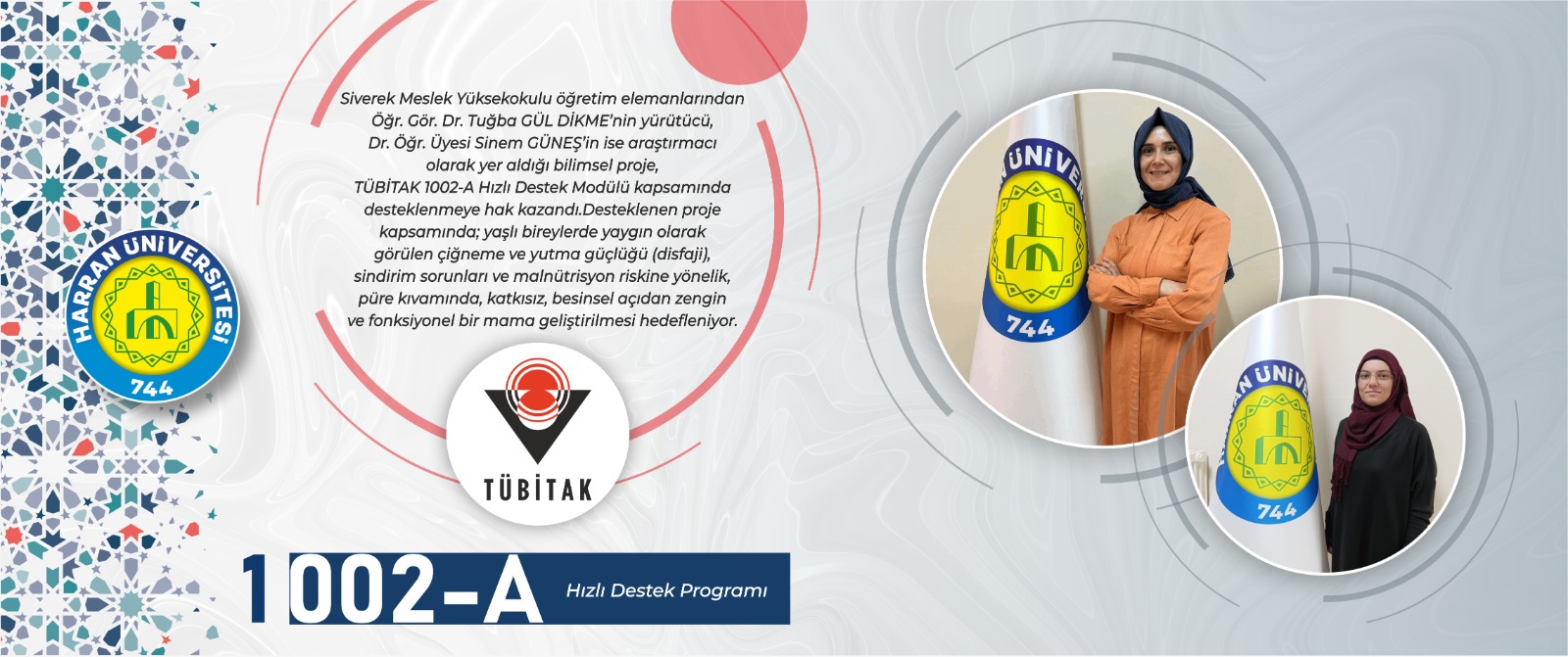 Harran Üniversitesi Siverek Meslek Yüksekokulu öğretim elemanlarından Öğr. Gör. Dr. Tuğba Gül Dikme’nin yürütücülüğünü, Dr. Öğr. Üyesi Sinem Güneş’in ise araştırmacı olarak yer aldığı bilimsel proje, TÜBİTAK 1002-A Hızlı Destek Modülü kapsamında desteklenmeye hak kazandı.