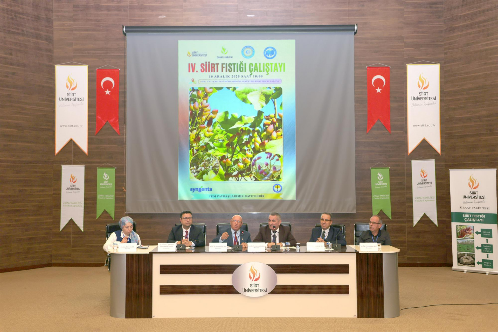Siirt Üniversitesi Ziraat Fakültesi’nin ev sahipliğinde, “Siirt Fıstığında Bereket, Bilimle Gelecek” mottosuyla düzenlenen IV. Siirt Fıstığı Çalıştayı, Mühendislik Fakültesi Konferans Salonu’nda gerçekleştirildi. Çalıştayın açılışına Siirt Valisi ve Belediye Başkan Vekili Dr. Kemal Kızılkaya, Siirt Üniversitesi Rektörü Prof. Dr. Nihat Şındak, bölgedeki Ziraat Fakültesi Dekanları, il protokolü, üniversite üst yönetimi, kamu kurum temsilcileri, akademisyenler, sektör temsilcileri, çiftçiler ve çok sayıda davetli katıldı.