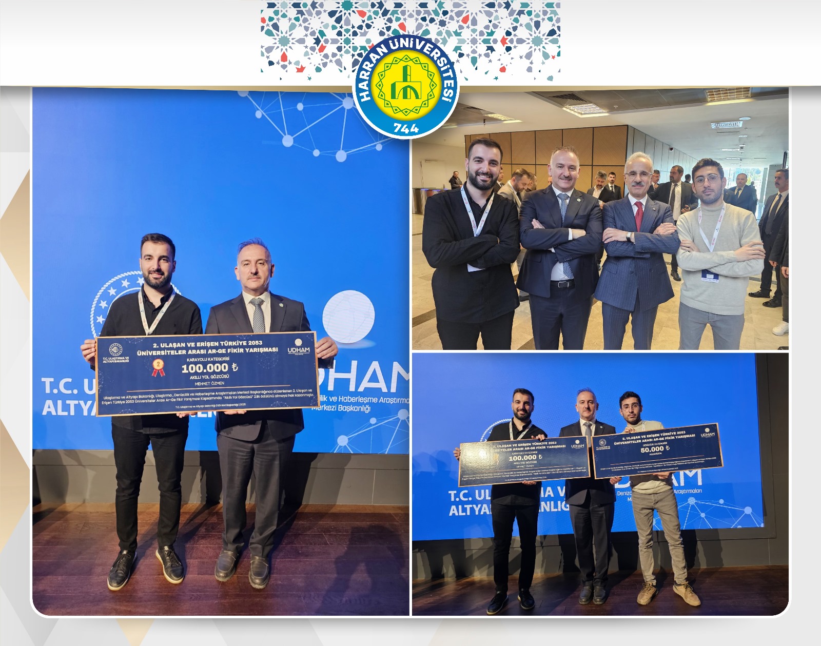 Sektör ihtiyaçlarına yönelik proje üretilmesini teşvik etmek ve üniversitelerde Ar-Ge kültürünü geliştirmek amacıyla Ulaştırma, Denizcilik ve Haberleşme Araştırmaları Merkezi Başkanlığı (UDHAM) tarafından düzenlenen yarışmada, Harran Üniversitesi Mühendislik Fakültesi öğrencisi Mehmet Özmen’in keskin virajlar, sisli bölgeler, tüneller ve kör noktalar gibi görüşün kısıtlandığı riskli yol bölgelerinde, mevcut güvenlik donanımlarının yetersizliğini çözmeyi hedeflediği "Akıllı Viraj Güvenlik Sistemi" ile karayolları kategorisinde ikincilik ödülüne layık görüldü. Ayrıca denizcilik kategorisinde “Aquavision” projesiyle yine Mühendislik Fakültesi öğrencisi Yasin Karaca ödül almaya hak kazandı.