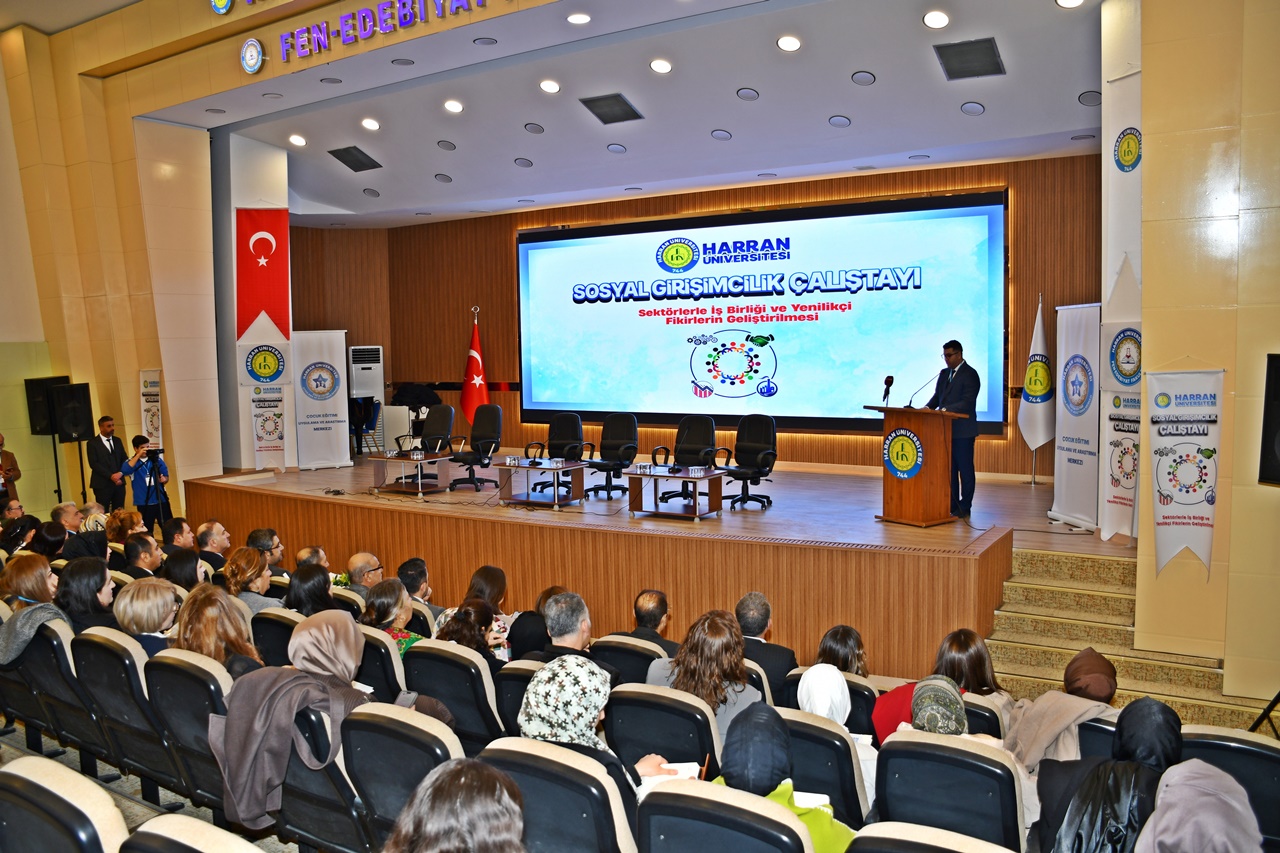 Üniversitemizin ev sahipliğinde, Harran Üniversitesi Sosyal Girişimcilik Uygulama ve Araştırma Merkezi Müdürü Dr. Öğr. Üyesi Hülya Eraslan'ın yürütücülüğünde, Bilimsel Etkinlikleri Düzenleme Projesi kapsamında “Sosyal Girişimcilik Çalıştayı: Sektörlerle İş Birliği ve Yenilikçi Fikirlerin Geliştirilmesi” başlıklı çalıştay gerçekleştirildi.