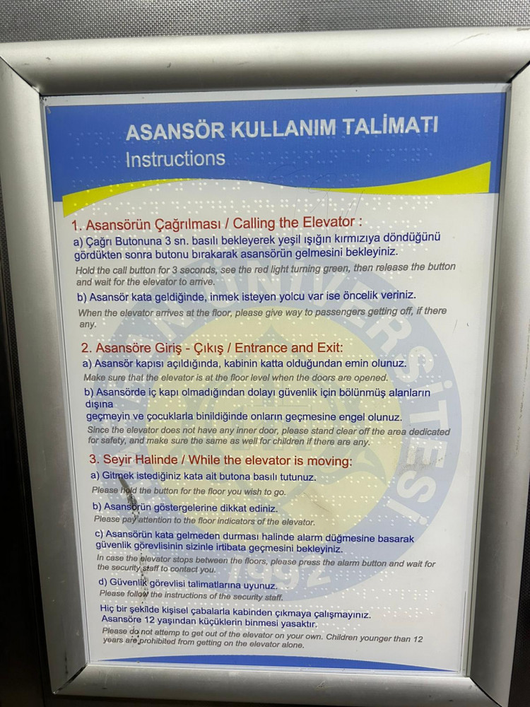 • Görme engelli bireyler için Braille alfabesiyle hazırlanmış kabartma yönlendirme levhaları belirli noktalara yerleştirilmiş olup, bina içi dolaşımı kolaylaştırmaktadır.