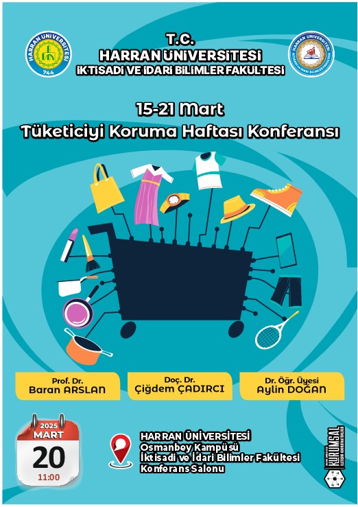Harran Üniversitesi İktisadi ve İdari Bilimler Fakültesi olarak, 20 Mart 2025 tarihinde düzenleyeceğimiz "15-21 Mart Tüketiciyi Koruma Haftası Konferansı" başlıklı etkinliğimize sizleri davet ediyoruz.