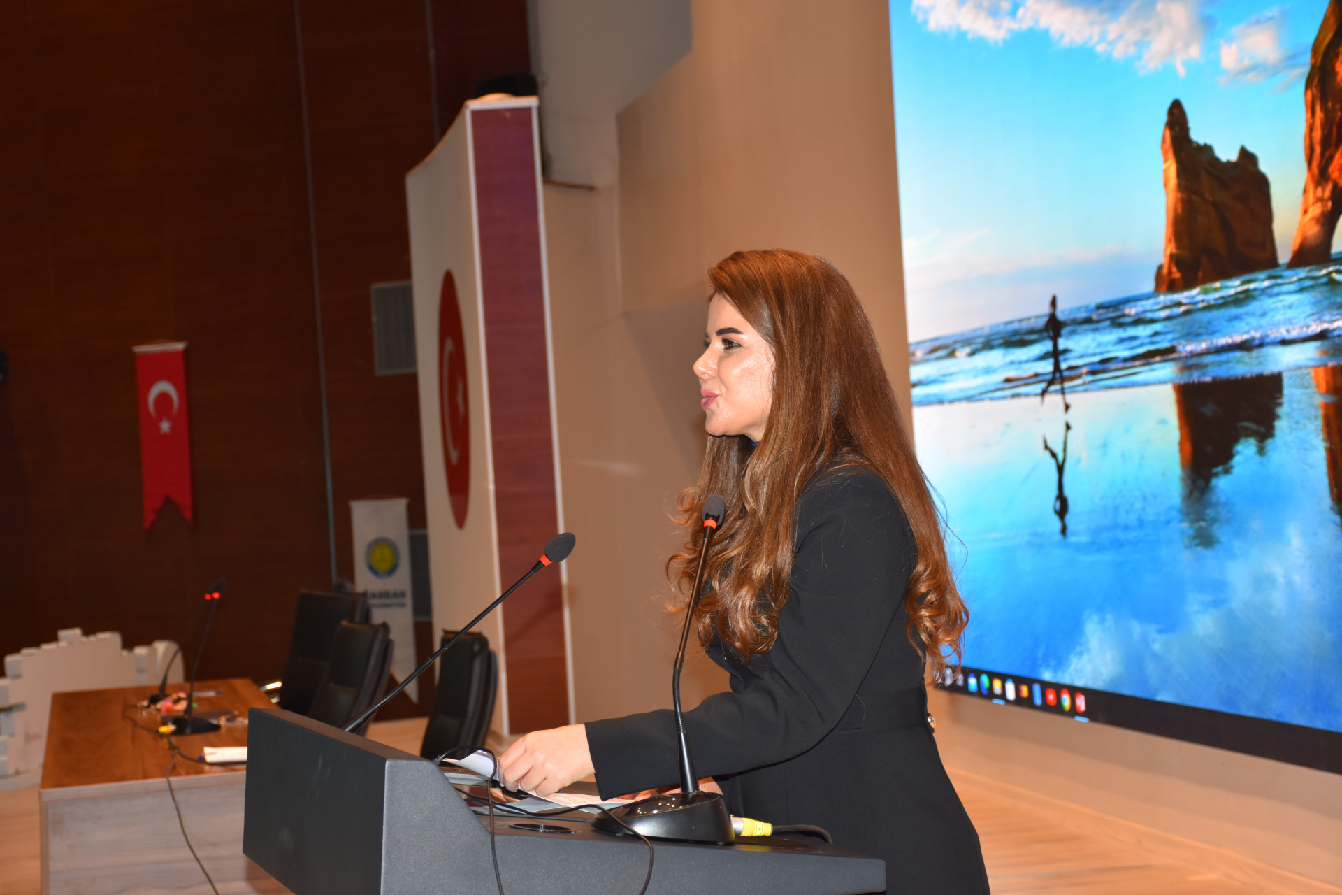 Arş. Gör. Dr. Ebru BİLGİN, "Kadınların Ekonomik Bağımsızlığı ve Ekonomideki Rolü" konulu sunumunda, kadınların iş gücüne katılımı, ekonomik bağımsızlıklarının önemine değindi.