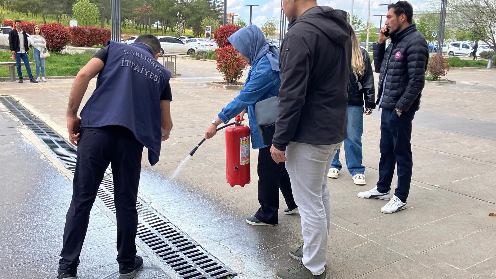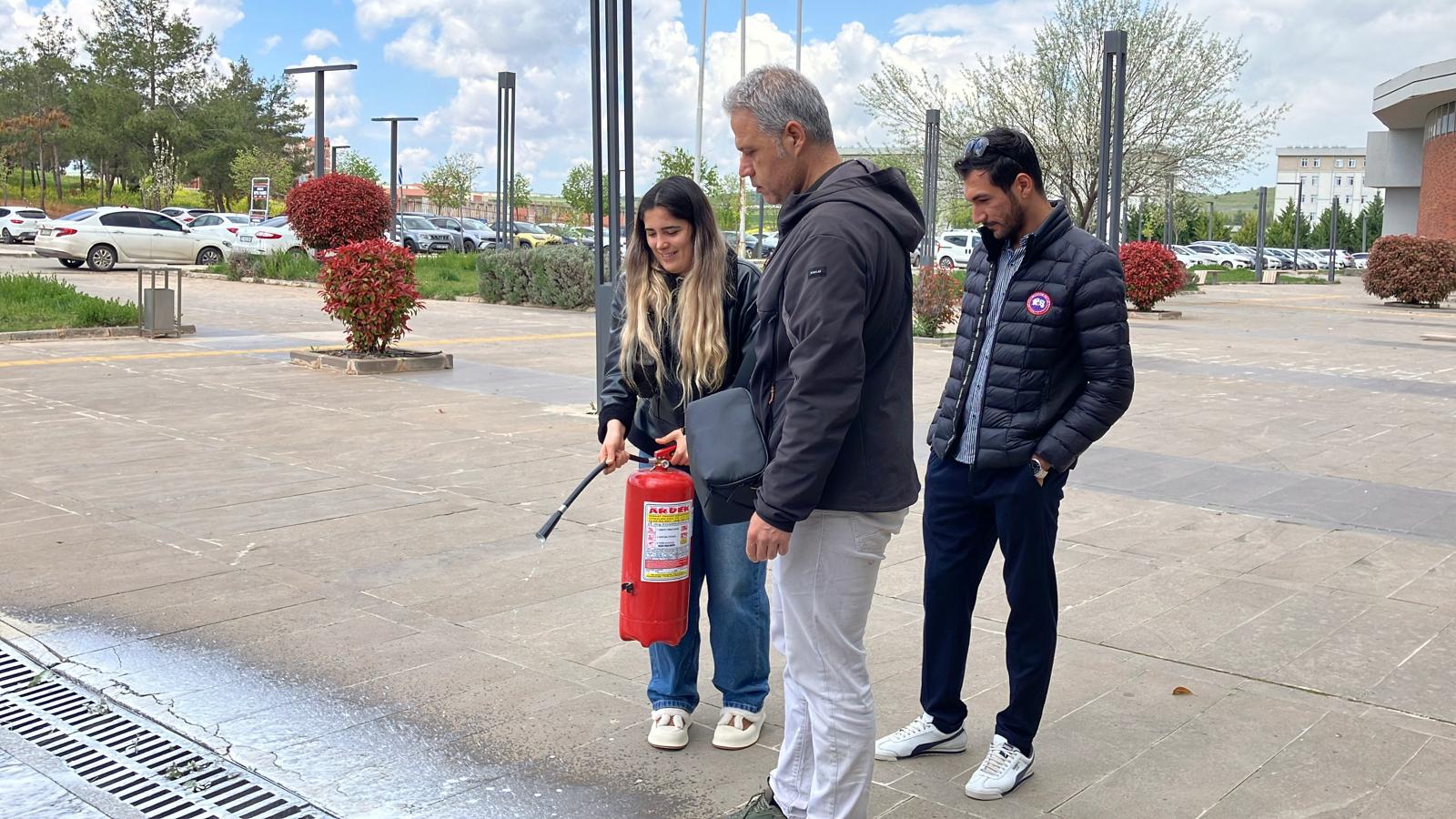 Program kapsamında Şanlıurfa Büyükşehir Belediyesi İtfaiye Dairesi Başkanlığı Eğitmeni Kübra ALKAN ise olası yangın durumlarında yangın söndürme tüplerinin doğru ve etkili kullanımına yönelik uygulamalı eğitim verdi.