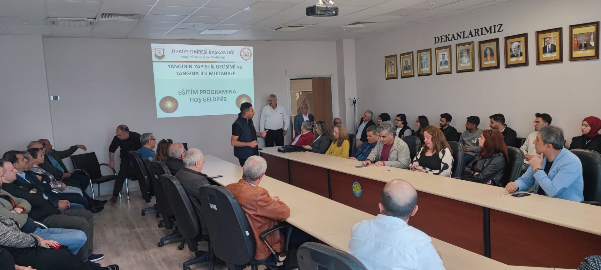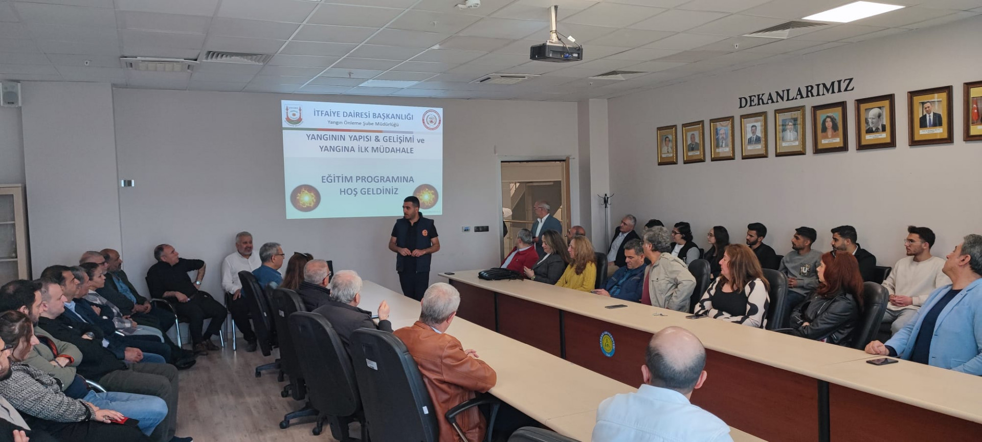 Fakültemiz öğrencileri ve personeline yönelik olarak yangının yapısı, gelişimi ve ilk müdahale konularında eğitim düzenlendi.
