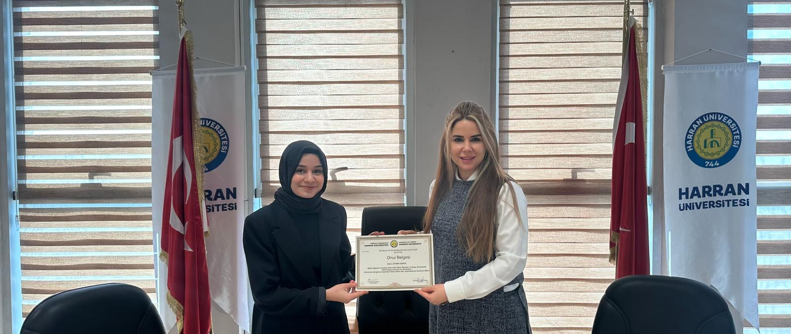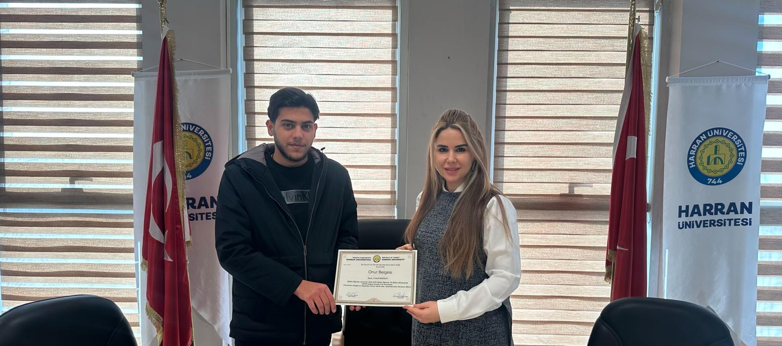 ÖĞRENCİLERİMİZ YAŞAR BEREKET VE ZEYNEP CENGİZ’E ONUR BELGELERİ TAKDİM EDİLDİ