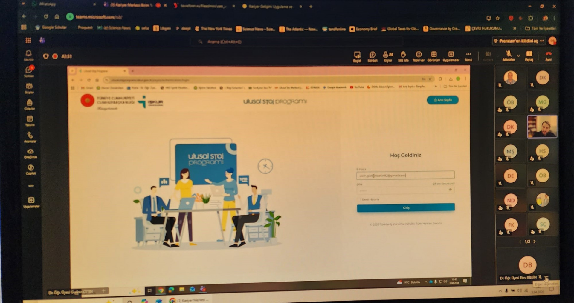 Rektör Yardımcımız Prof. Dr. Nihat DENEK ile Kariyer Gelişimi Uygulama ve Araştırma Merkezi Müdürü Dr. Öğr. Üyesi Gürkan ÇETİN’in katılımıyla, İŞKUR’un Ulusal Staj Programı kapsamında çevrim içi toplantı gerçekleştirildi.