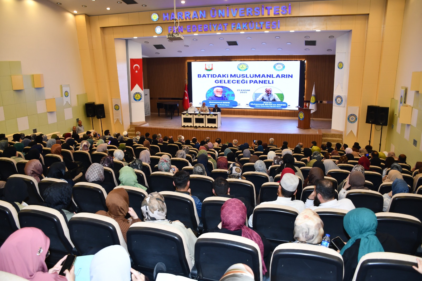 Harran Üniversitesi İlahiyat Fakültesi öncülüğünde, Şanlıurfa Büyükşehir Belediyesi ve Harran Üniversitesi’nin katkılarıyla “Batıdaki Müslümanların Geleceği” başlıklı panel düzenlendi. 25 Kasım 2025 tarihinde Osmanbey Kampüsü Fen-Edebiyat Fakültesi Konferans Salonu’nda gerçekleştirilen programa, Harran Üniversitesi Rektör Yardımcısı Prof. Dr. Abdülcenap Cevheri, fakülte dekanları, akademisyenler ve öğrenciler yoğun ilgi gösterdi.