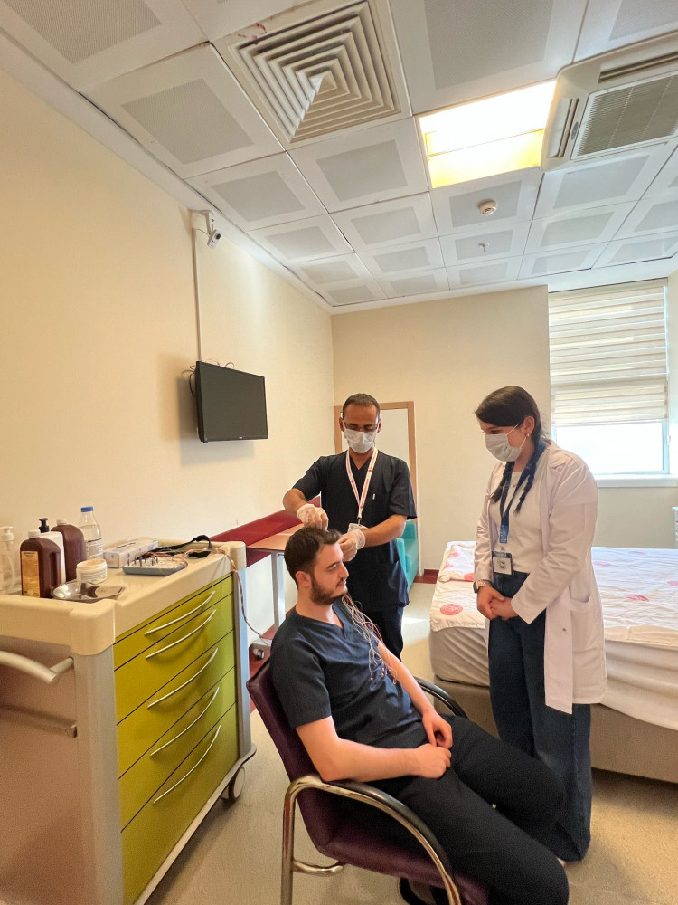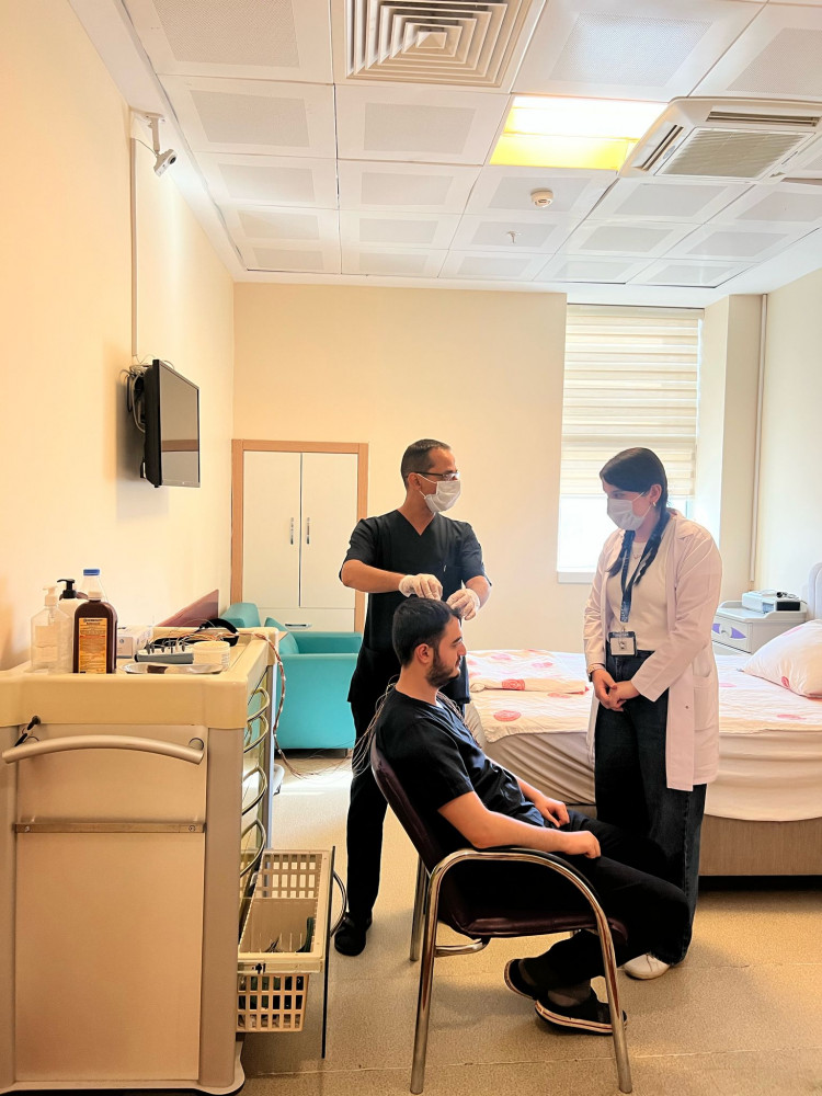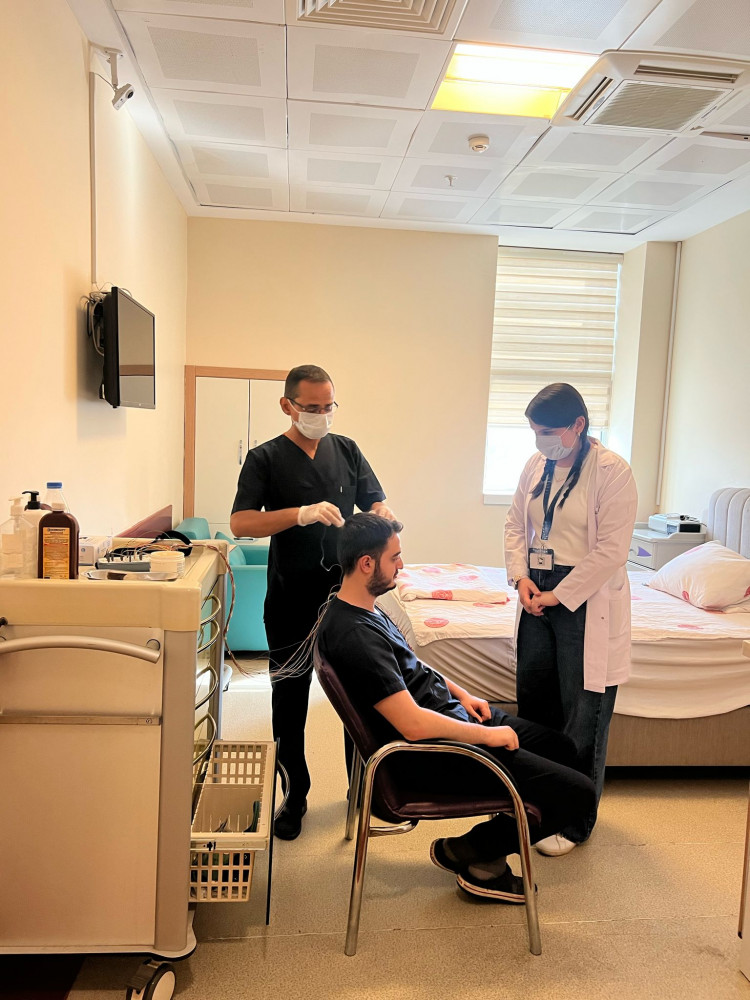 1- Uyku Laboratuvarı Gezisi Mart 2025. Göğüs hastalıkları bünyesinde bulunan uyku laboratuvarı randevu sistemi ile çalışmaktadır. Uyku laboratuvarı için hastalarımız aç olarak gelmekte ve klinik tarafından önerilen miktarda yemek hastaneden temin edilmektedir. Her gece için üç yatılı hasta, tüm sistemlerle takip edilebilen ve hasta mahremiyeti ve gizlilik kurallarına uyularak, moniterize edilerek uyku düzeni bilgileri cihazlarla takip edilmekte ve veriler uzman kişiler tarafından yorumlanarak rapor haline getirilmektedir. Hastanın hazırlanması