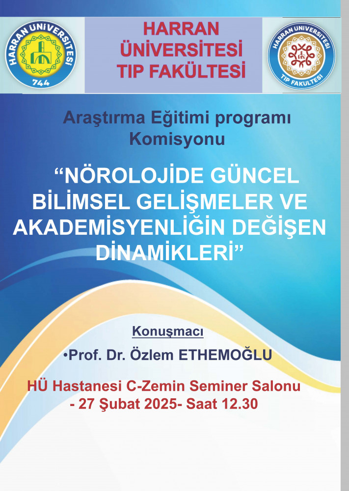 Fakültemiz Araştırma Eğitimi programı Komisyonu tarafından "Nörolojide Güncel Bilimsel Gelişmeler ve Akademisyenliğin Değişen Dinamikleri" adlı seminer düzenlenecektir (27.02.2025).