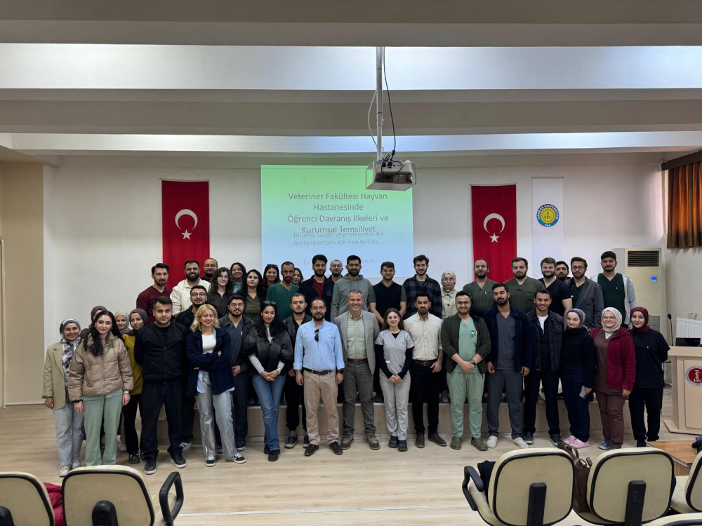 İntörn öğrencilerimize yönelik olarak “Öğrenci Davranış İlkeleri ve Kurumsal Temsiliyet” başlıklı bilgilendirme ve farkındalık toplantısı, Hayvan Hastanesi Başhekimi Doç. Dr. Ünal Yavuz tarafından Mehmet Akif Ersoy Konferans Salonu’nda gerçekleştirildi. Toplantıda, intörn öğrencilerin klinik uygulamalar süresince uymaları gereken etik ilkeler, mesleki sorumluluklar ve akademik disiplin çerçevesinde sergilemeleri beklenen tutum ve davranışlar ayrıntılı bilgiler verildi. Ayrıca öğrencilerin, hem üniversiteyi hem de Hayvan Hastanesini temsil etme sorumluluğu kapsamında, hasta sahipleriyle iletişim, ekip çalışması, kurumsal kimliğe uygun davranış ve profesyonel yaklaşım konularında bilgilendirme yapıldı. Etkinliğin, intörn öğrencilerin mesleki yaşamlarına daha bilinçli, sorumlu ve kurumsal değerlere uygun bir yaklaşım kazandırmasına katkı sağlaması hedeflendi.