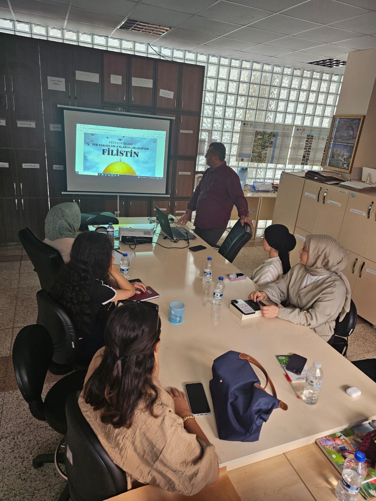 Etkinlikte Filistin’e dair görseller ve temsili canlandırmalarla konunun önemi öğrencilerle paylaşıldı.
