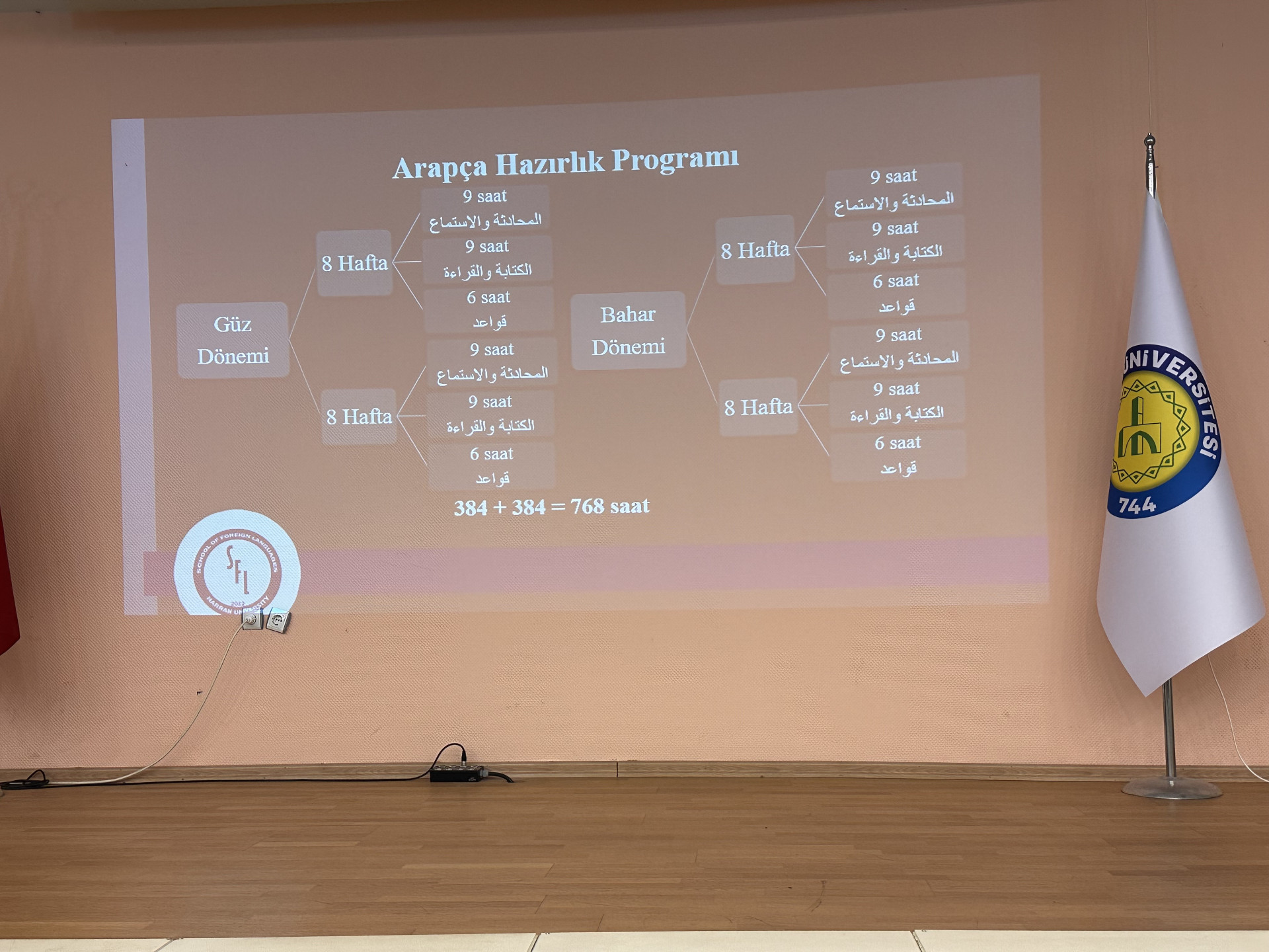 Ayrıca, hazırlık eğitiminin önemi, Arapça dil becerilerinin geliştirilmesine yönelik izlenecek yöntemler ve öğrencilerin uyum sürecine katkı sağlayacak etkinlikler hakkında bilgi verildi. Öğrencilere kütüphane, öğrenci yaşam merkezi ve bölüm web sayfası üzerinden ulaşabilecekleri kaynaklar da tanıtıldı.
