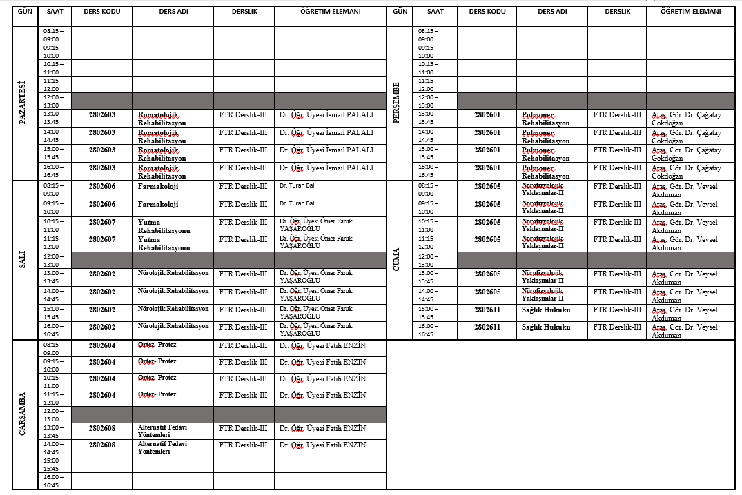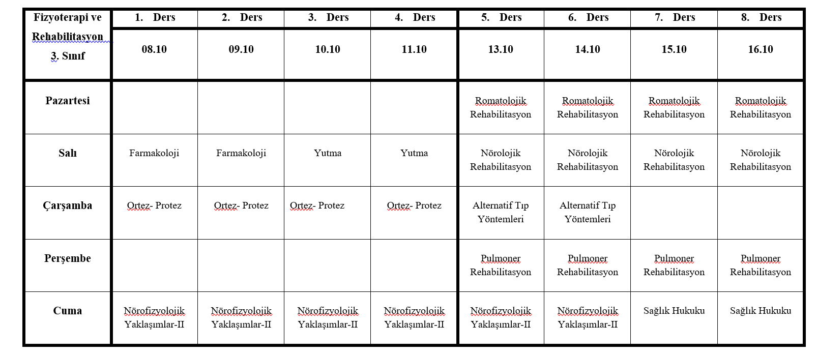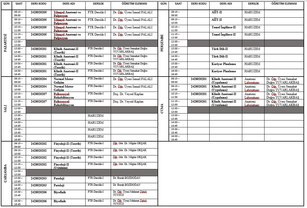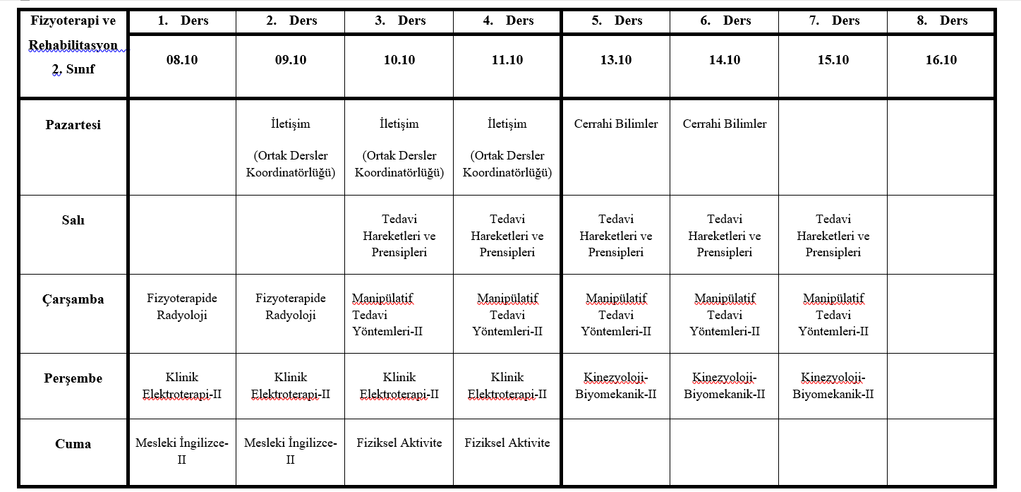 2025–2026 akademik yılı bahar dönemine ait ders programı, ders gün, saat ve derslik bilgileri aşağıda yer almaktadır.