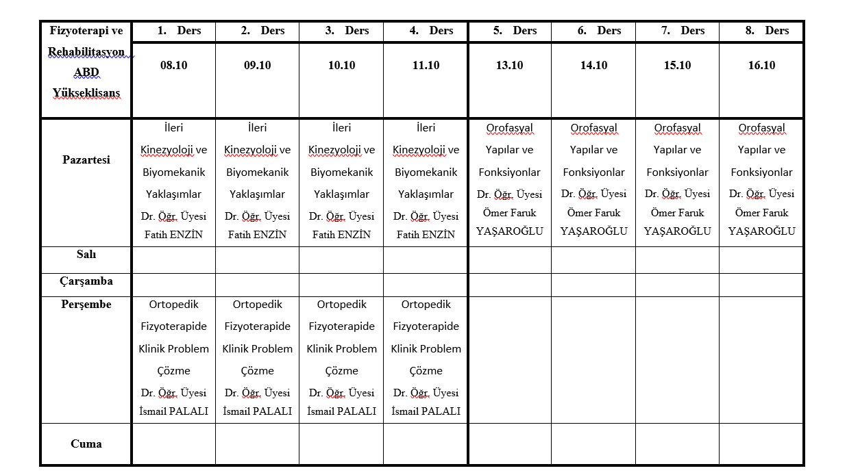 2025–2026 akademik yılı bahar dönemine ait yüksek lisans ders programı, ders gün ve saat bilgileri aşağıda yer almaktadır.