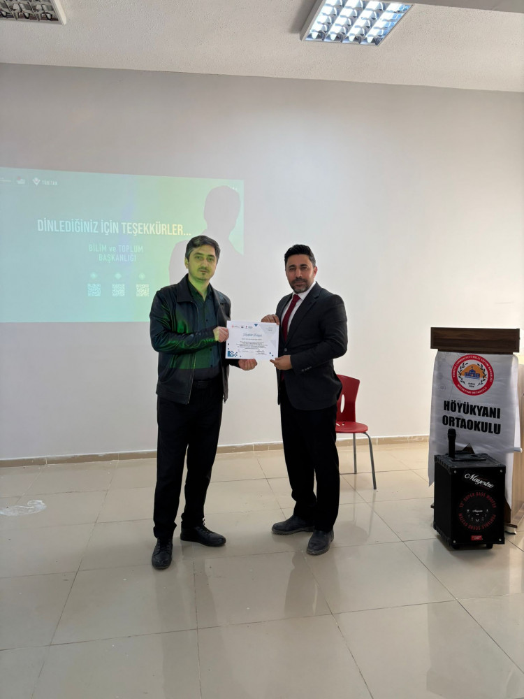 Etkinlik sonunda okul yönetimi tarafından Dr. Mustafa Çağrı Gürbüz’e katkılarından dolayı teşekkür belgesi takdim edildi. Harran Üniversitesi olarak toplumsal fayda odaklı akademik faaliyetlerimize ve bilimi toplumun her kesimine ulaştırma vizyonumuza devam ediyoruz.