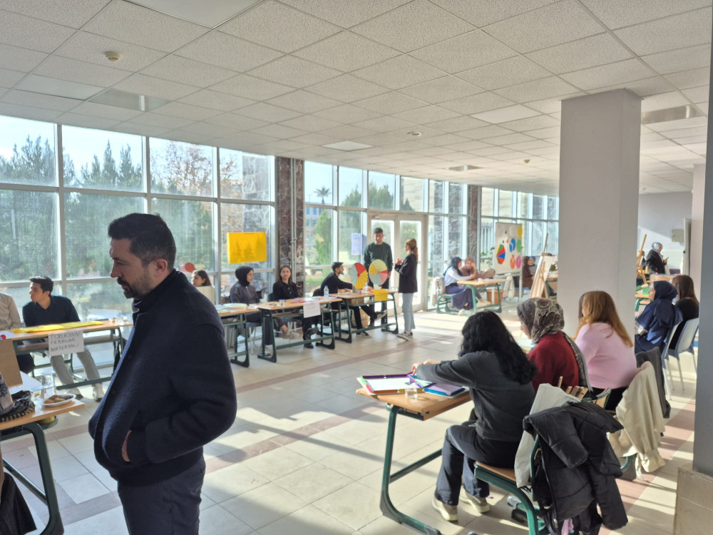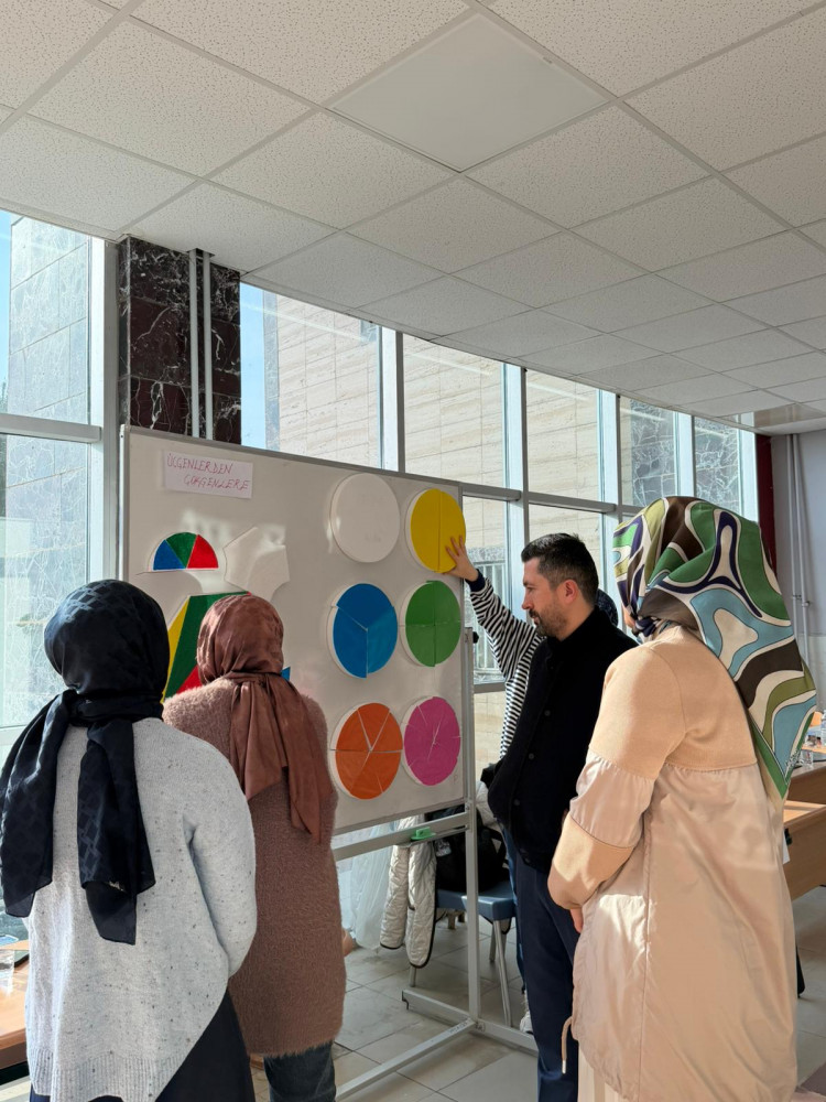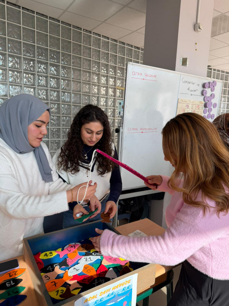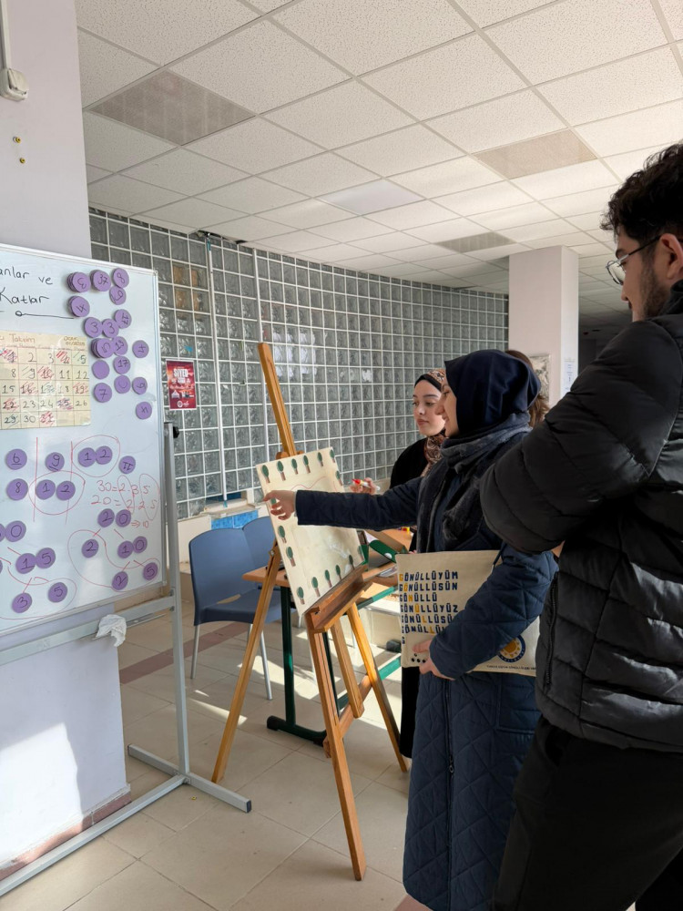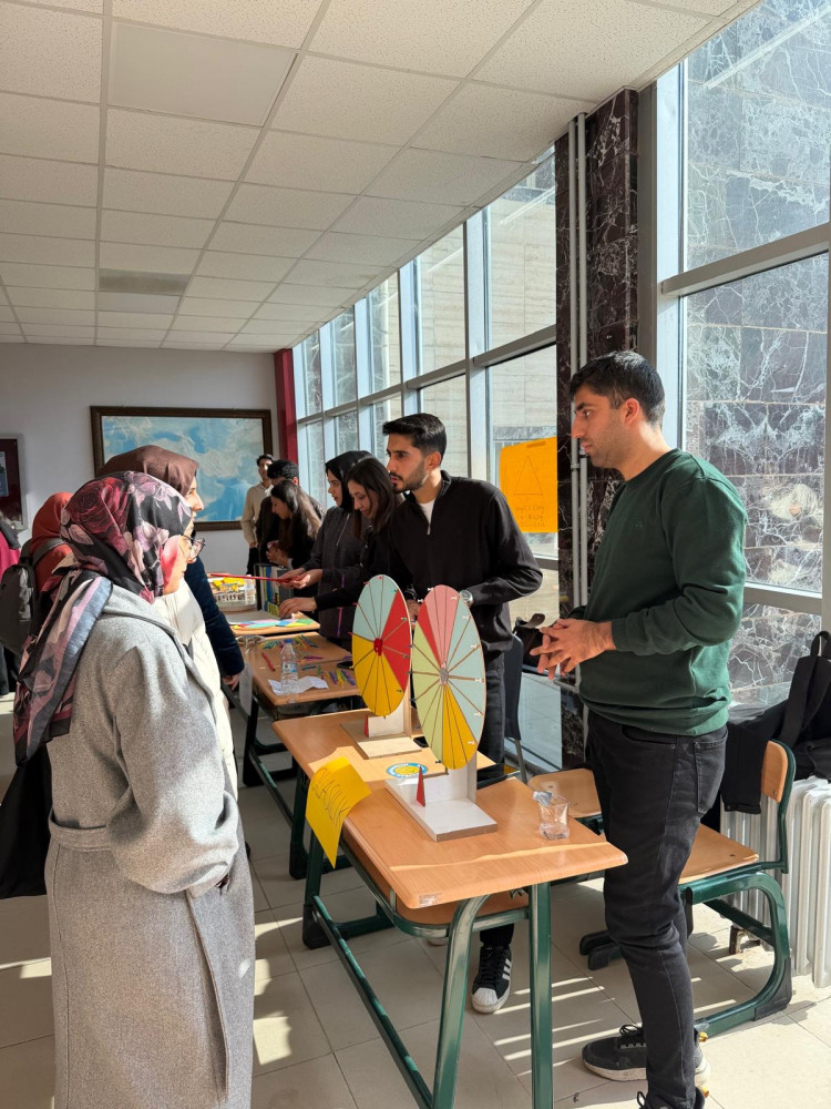 Dr. Öğr. Üyesi Zeynep ÇAVUŞ ERDEM’in yürütücülüğünde gerçekleştirilen "Matematik Öğretiminde Materyal Tasarımı" dersi kapsamında öğretmen adayları tarafından geliştirilen materyaller eğitim fakültesinde sergilendi. Eğitim fakültesi öğrencileri ve bir çok akademisyen tarafından ziyaret edilen sergide öğrenciler materyallerinin amacını hangi öğrenme alanına hizmet ettiği ve öğretim içeriğine nasıl uygulanacağını açıkladılar. Sergiyi gezen, Eğitim Fakültesi Dekanı Prof.Dr. Sedat ŞEN öğretmen adaylarının bu tür materyallerle matematik öğretiminin ele alınmasının somutlaştırma ve öğrenme zorluğunu önüne geçmek adına oldukça önemli olduğunu belirtti. Ziyaretçiler ayrıca materyallerin açıklayıcı öğretim içerikleri oluşturabileceğini belirterek öğretmen adaylarını takdir ettiler. Geliştirilen materyallerin dezavantajlı ve öğrenme güçlüğü yaşayan öğrenciler için de etkili bir öğretim aracı olarak sunulacağını belirten Dr.Çavuş Erdem, sergiyi ziyaret ederek sağladığı katkılardan dolayı akademisyenlere ve verdikleri emeklerden dolayı tüm öğretmen adaylarına teşekkür etti. Öğretmen adaylarının motivasyonlarının artırılmasında bu tür etkinliklerin önemi vurgulanarak etkinlik tamamlandı.