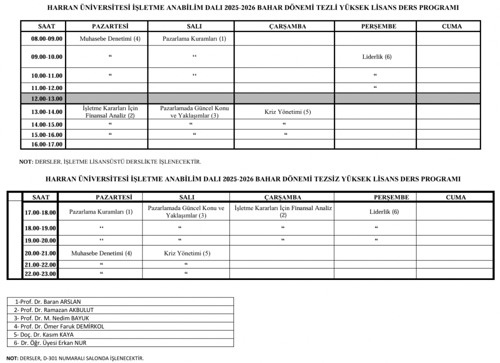 Lisansüstü Ders Programı