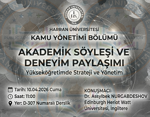 Harran Üniversitesi Kamu Yönetimi Bölümü tarafından düzenlenen Akademik Söyleşi ve Deneyim Paylaşımı etkinliği kapsamında, Edinburgh Heriot Watt Üniversitesi öğretim üyelerinden Dr. Assylbek NURGABDESHOV öğrencilerimizle bir araya gelecektir.