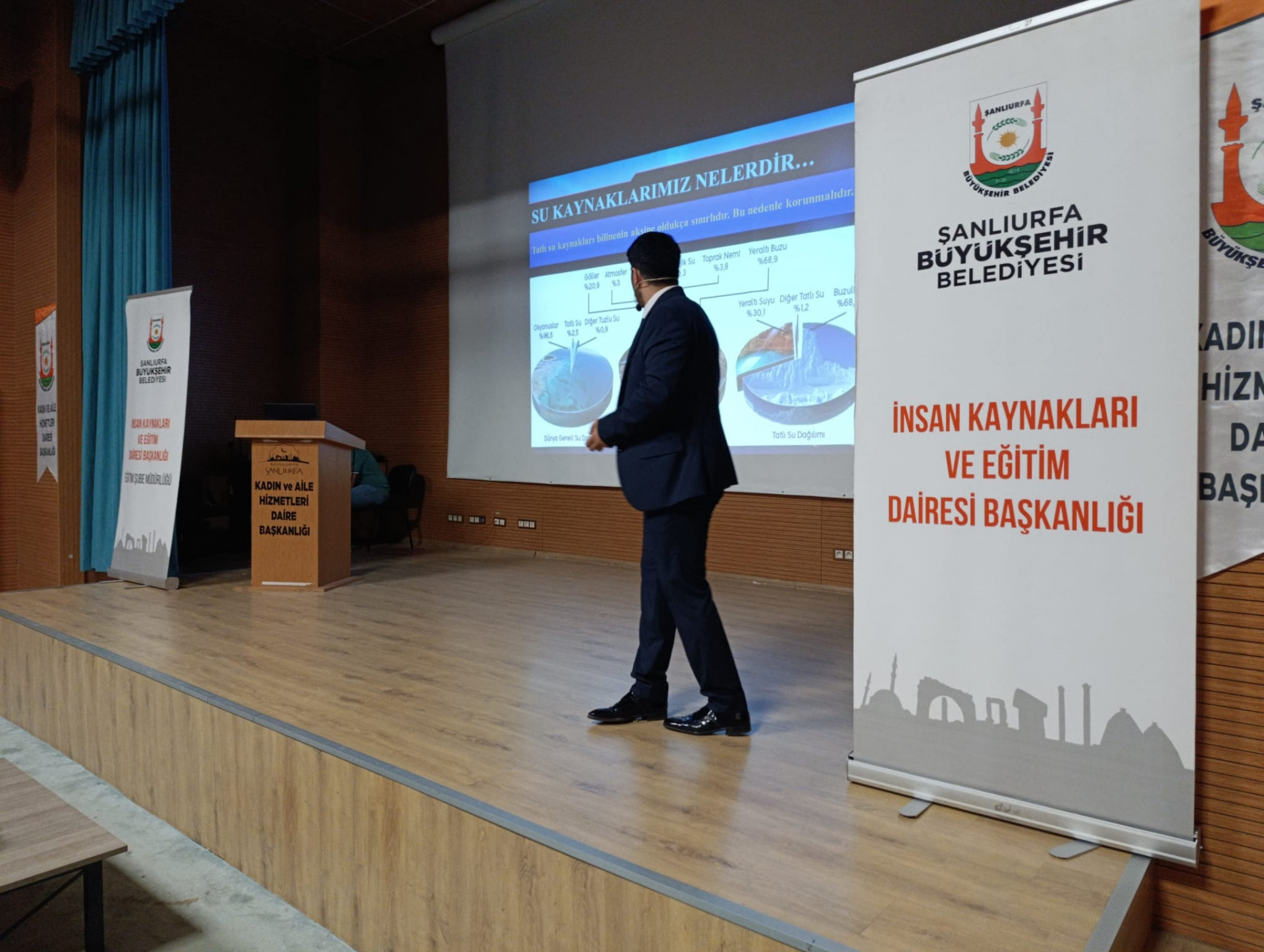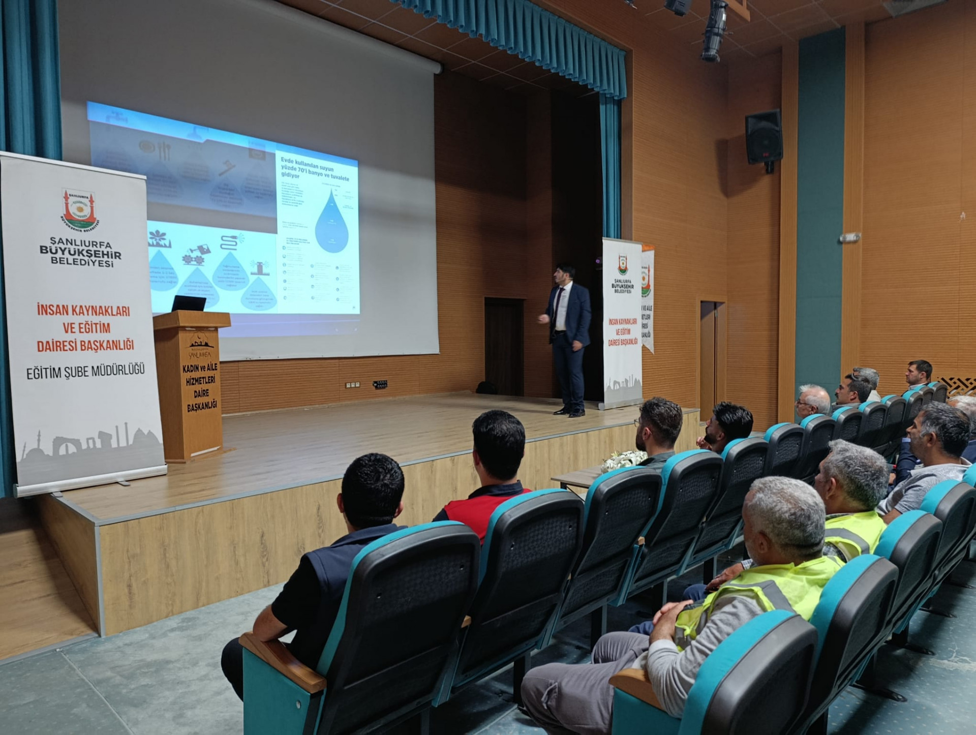 11 Nisan Kadın Kültür ve Eğitim Merkezi Konferans Salonu’nda düzenlenen eğitime belediyenin çeşitli daire başkanlıklarından çok sayıda personel katılım sağladı. Eğitimde, küresel ısınma ve teknolojik gelişmelerin su kaynakları üzerindeki olumsuz etkileri ile birlikte bireysel ve kurumsal düzeyde alınabilecek tasarruf önlemleri ele alındı.