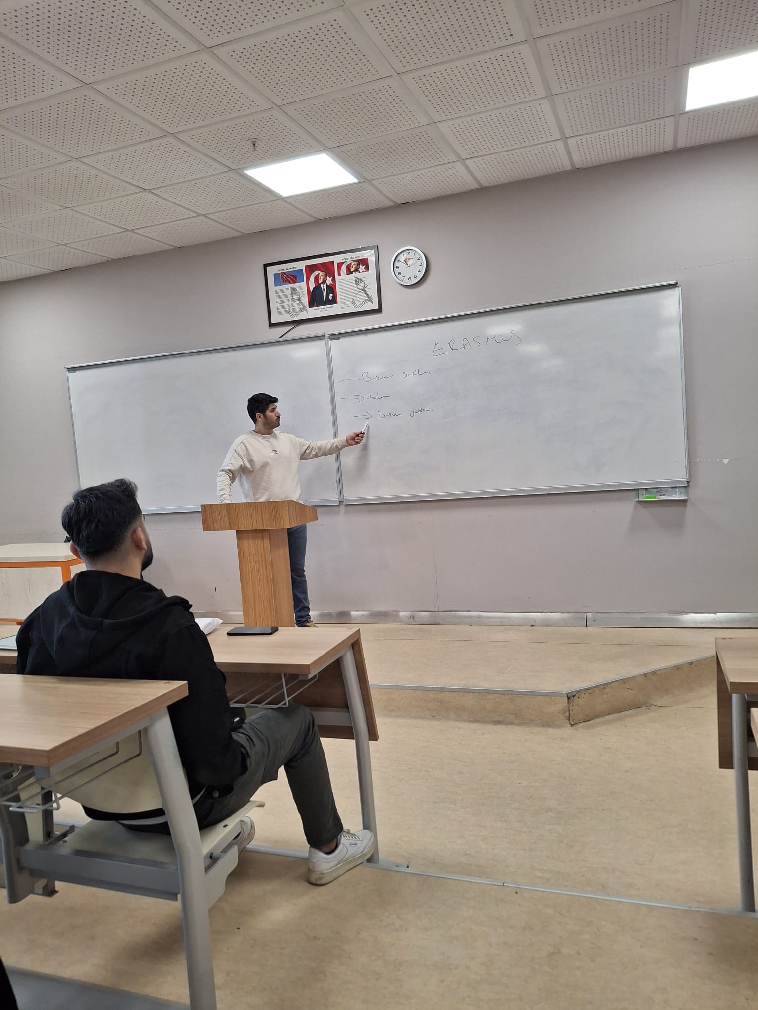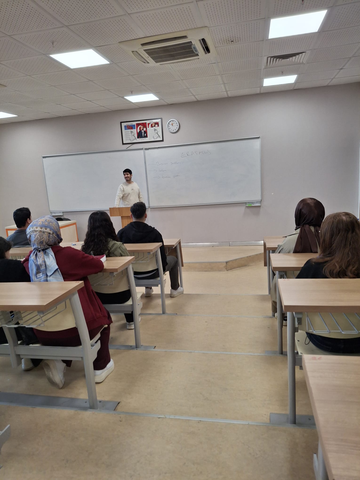 09.04.2026 tarihinde saat 12:30’da, Erasmus programına ilişkin farkındalığı artırmak ve öğrencileri bilgilendirmek amacıyla Kamu Yönetimi Bölümü Erasmus Koordinatörü Dr. Öğr. Üyesi Ömer Faruk BİLBAY tarafından bir bilgilendirme toplantısı gerçekleştirilmiştir.