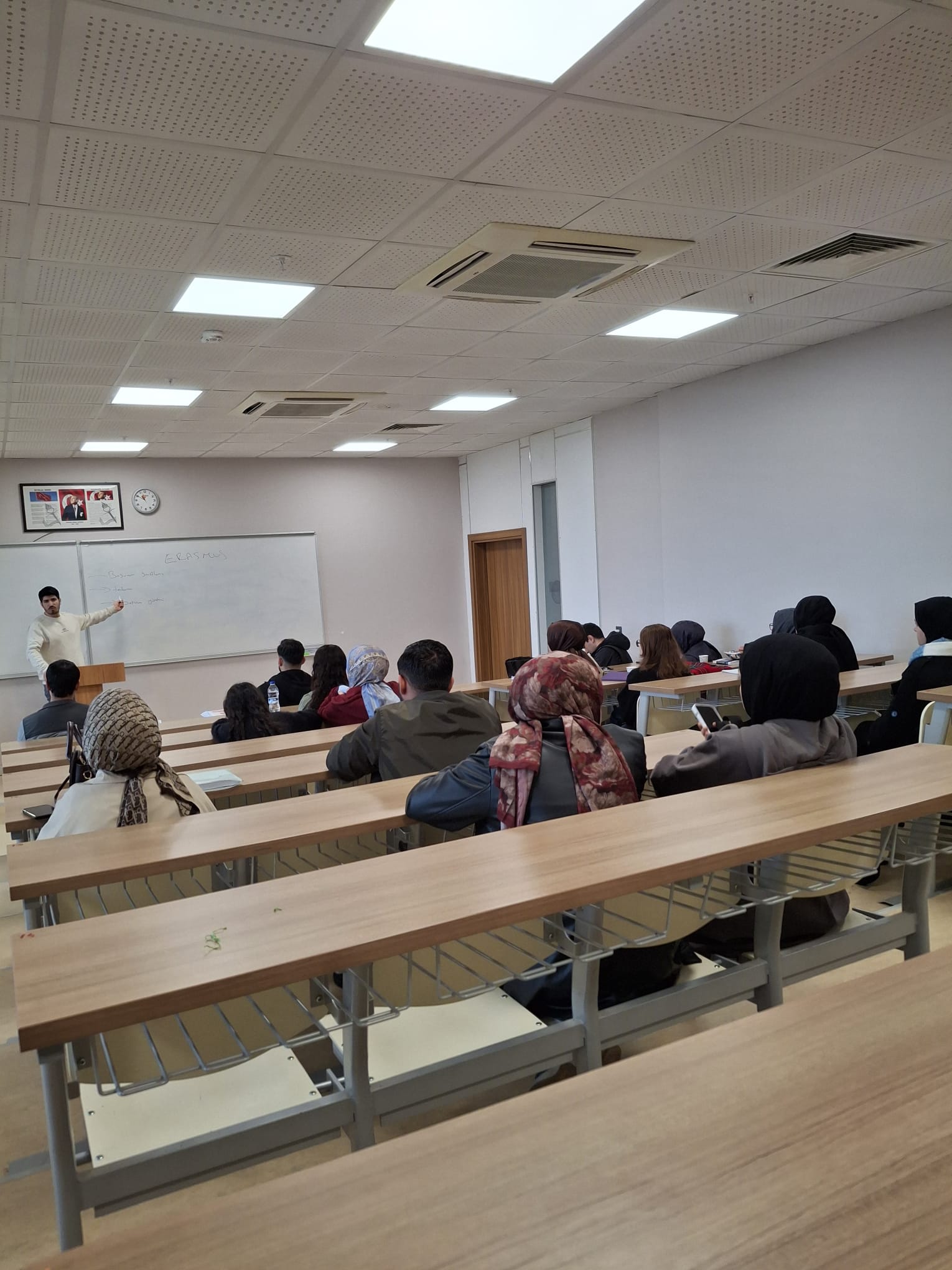 Toplantı sonunda Erasmus programının öğrencilerin akademik, kültürel ve kişisel gelişimlerine sağlayacağı katkılar vurgulanarak programa katılım teşvik edilmiştir.