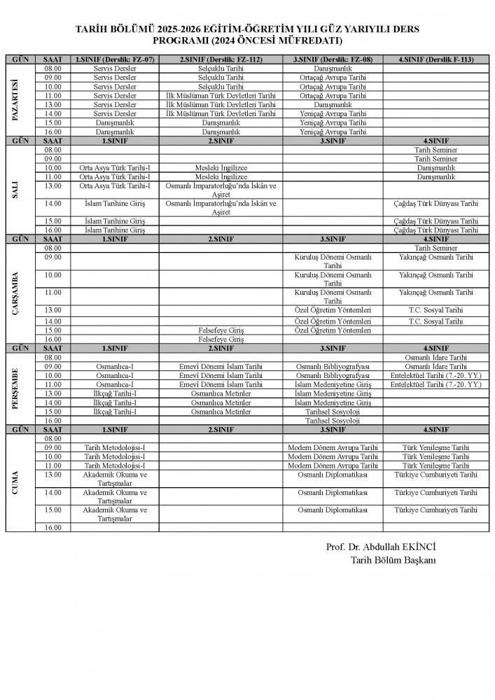 2025-2026 Güz Dönemi Ders Programı (2024 Öncesi Müfredata Tabi olan Öğrenciler için)