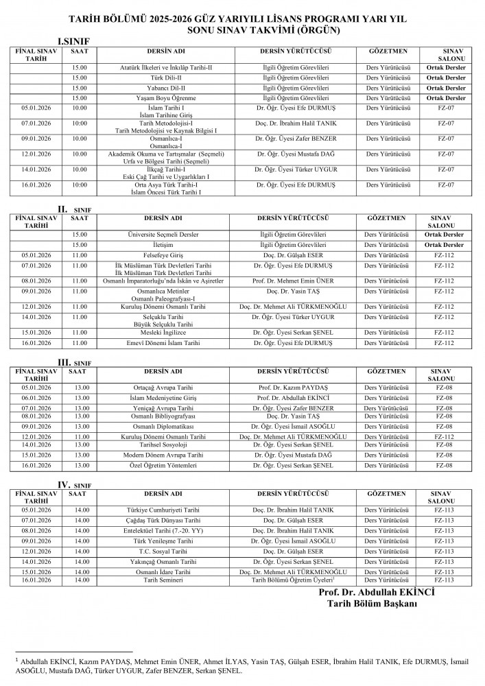 2025-2026 Güz Dönemi Güncellenen Final Sınav Programı