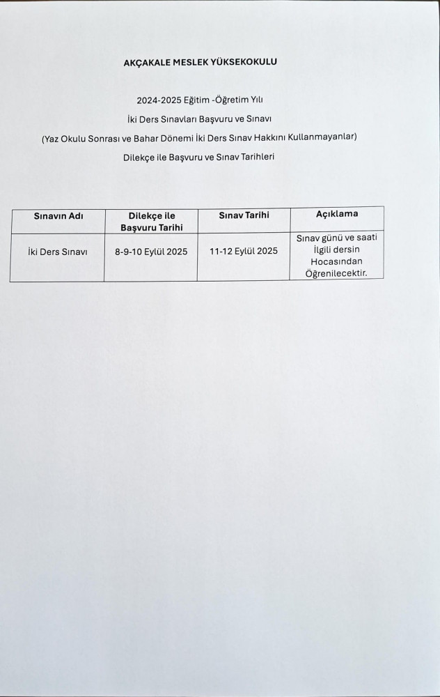 İki Ders Sınav Tarihleri İçin Tıklayınız...