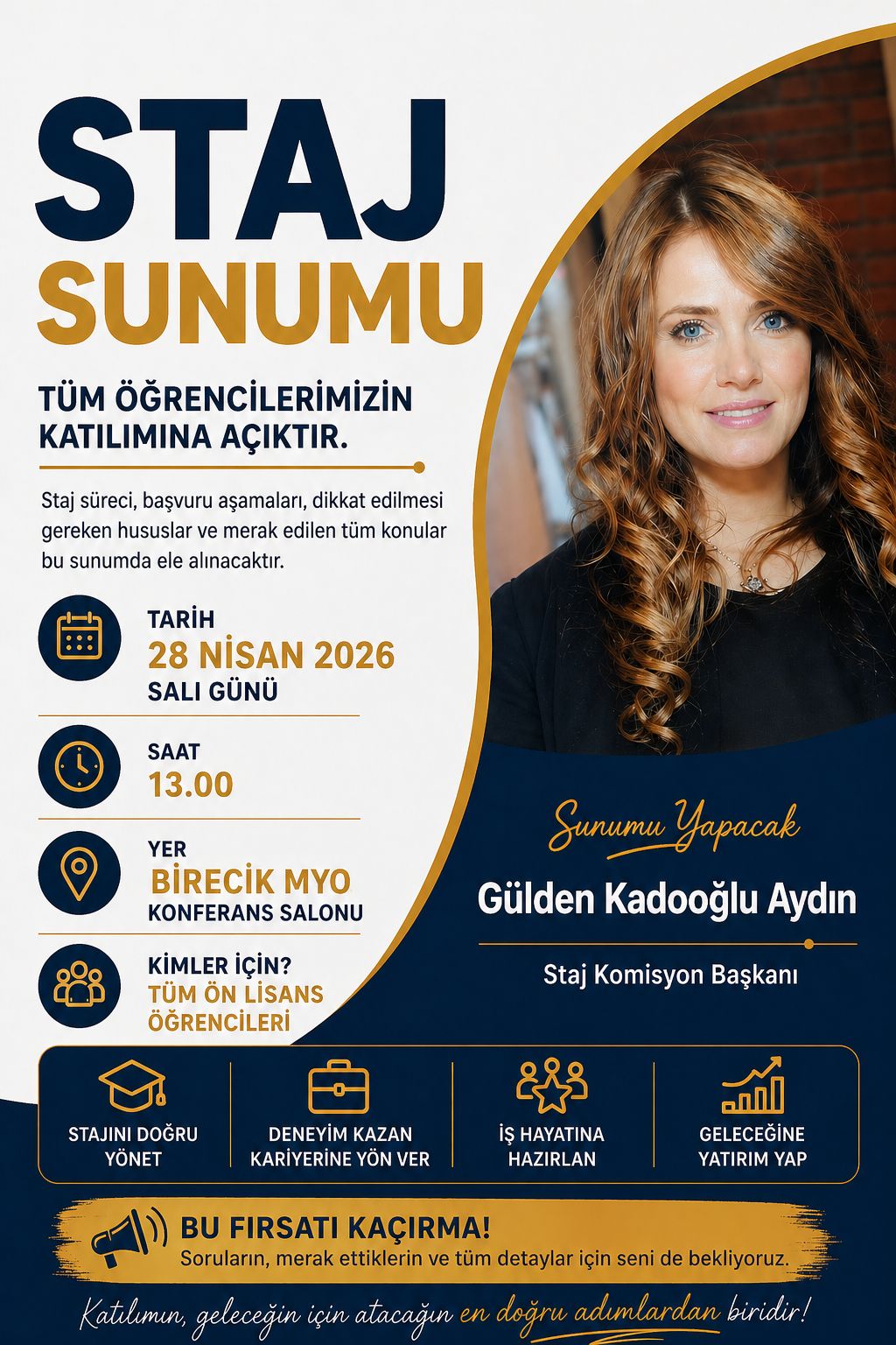 Staj takvimi ve süreci ile ilgili gerçekleştirilecek seminere staj yapmayan tüm öğrencilerimiz davetlidir.
