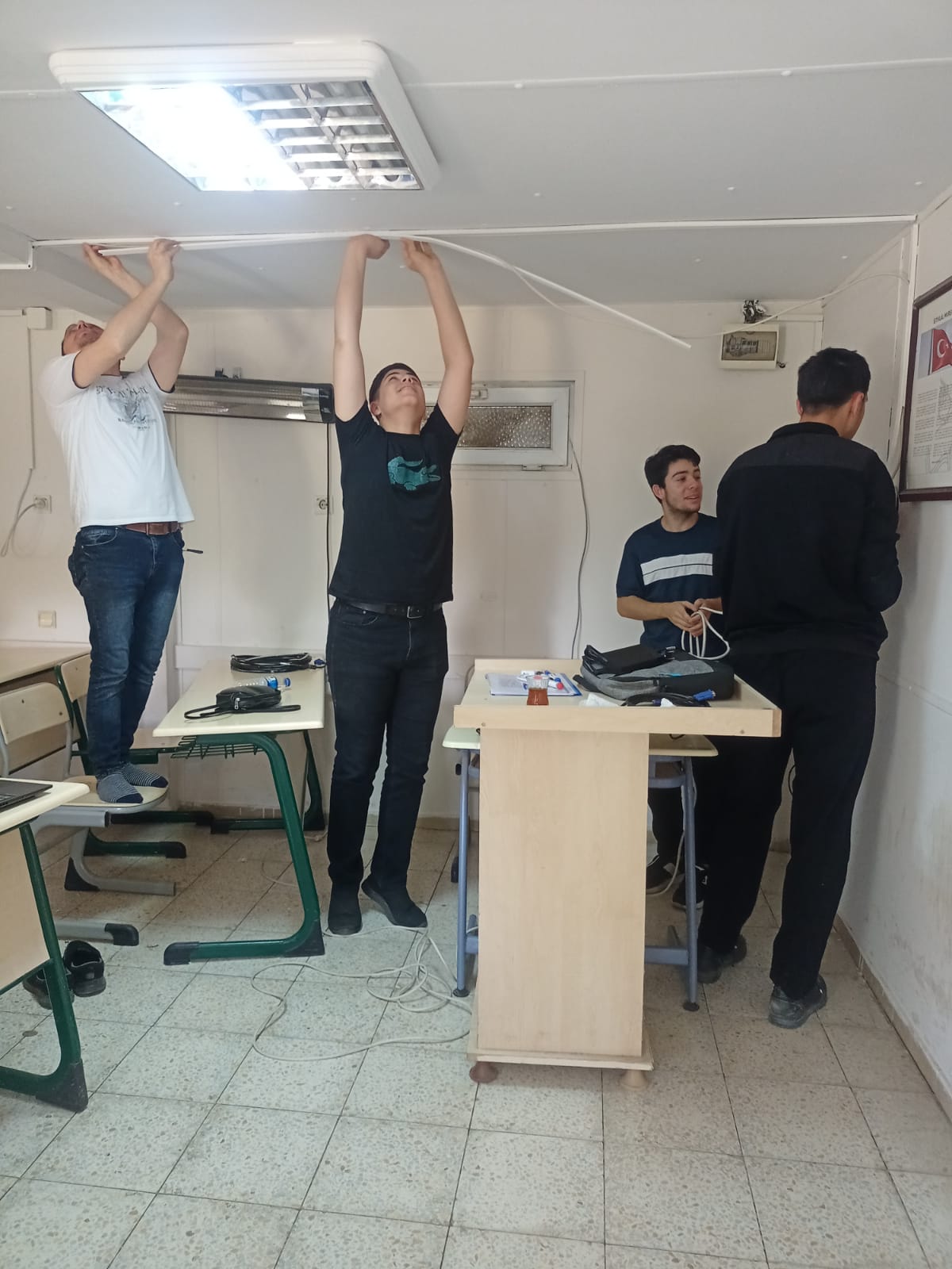 Bilgisayar Teknolojileri Bölüm Başkanı Öğr. Gör. Serkan KORKMAZ, bilgisayar programcığı öğrencileri ile birlikte bilgisayar programcılığı dersliklerinde bulunan projeksiyon cihazlarının kontrolünü ve tadilatını gerçekleştirmişlerdir. Yapılan uygulamada yüksek okulumuzda atıl durumda bulunan projeksiyon kabloları test edilerek çalışır vaziyette olan projeksiyon kablosunun tavanlara ve duvarlara monteli halde bulunan kanaldan geçirilerek montajını ve testini birlikte gerçekleştirmişlerdir.