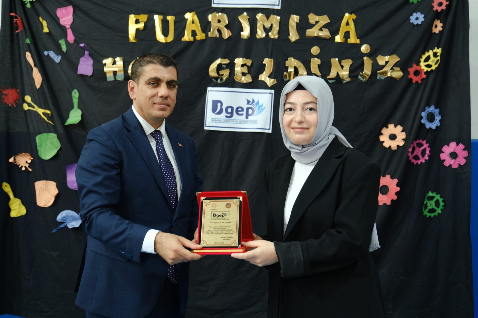 Birecik Kaymakamlığı ve Milli Eğitim Müdürlüğü himayesinde 22 Mayıs Perşembe günü gerçekleştirilen Başarıyı İzleme ve Geliştirme Projesi (BİGEP) kapsamında Birecik'te bulunan ortaokul ve liselerin katıldığı proje yarışması düzenlendi. BİGEP fuarına okulumuz adına Yüksekokulumuz Akademisyenleri Dr. Öğr. Üyesi Esra Nur Akpınar, Dr. Mehmet Demirdöğmez ve Dr. Ali Koçyiğit Rektörlüğümüzün onayı ile jüri üyesi olarak katkıda bulundular. Fuarda gerekli değerlendirmeler jüri üyeleri Akademisyenlerimiz tarafından yapılmış ve İlçe Program Koordinatörü Mehmet Atmaca’ya teslim edildi. Milli Eğitim Müdürü Sayın Mehdi Turgut, öğretim elemanlarımıza bizzat teşekkür ederek, Yüksekokulumuzun ilçedeki varlığının ve bu konudaki işbirliğinin sevindirici olduğunu belirtti. Birecik Kaymakamı Sayın Mustafa Gürbüz program sonunda öğretim elemanlarımıza plaket vererek teşekkür etti.