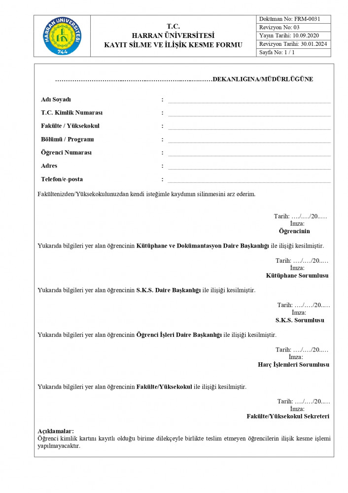 Harç İade Formu