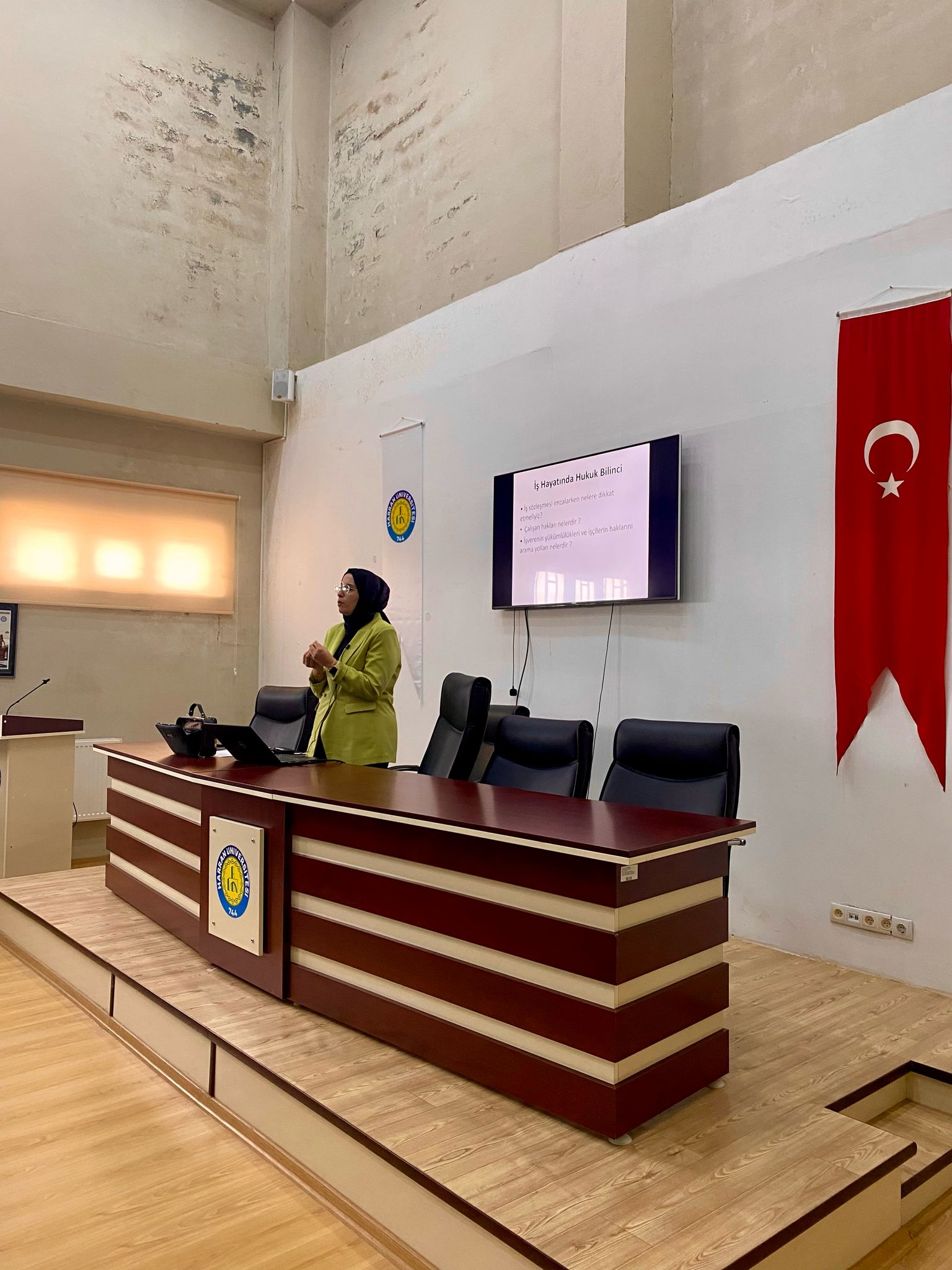 - 18.03.2025 tarihinde Okulumuzda Avukat Büşra ŞEKER’in koordinatörlüğünde “Birey Olmada Hukukun Önemi” isimli konferans düzenlendi.