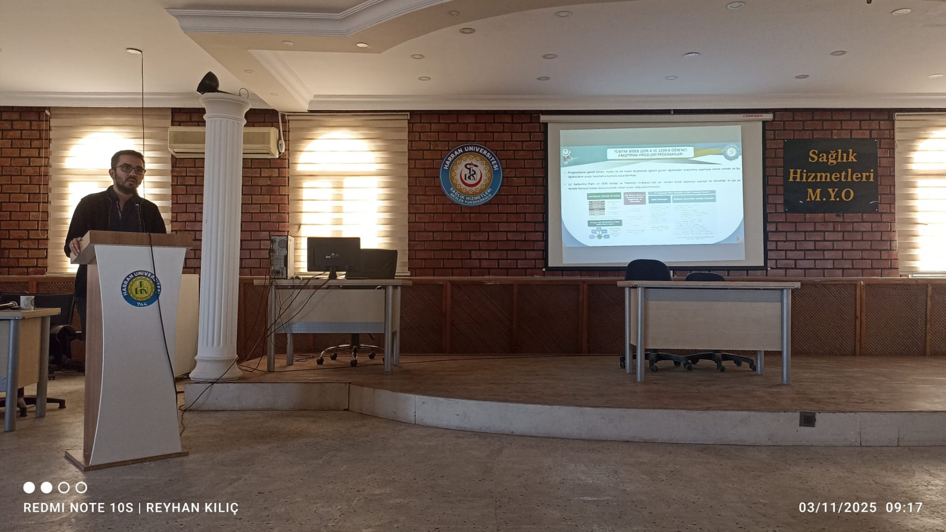 Okulumuzda, Dr. Öğr. Üyesi Muhammed Ali PALABIÇAK hocamızın katılımıyla TÜBİTAK 2209-A Üniversite Öğrencileri Araştırma Projeleri Destekleme Programı hakkında bilgilendirme etkinliği gerçekleştirildi.