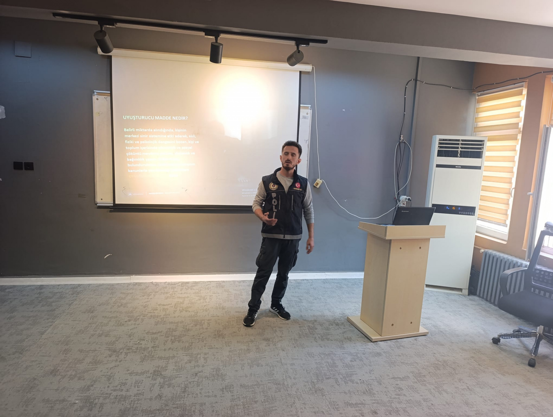 Siverek Emniyet Müdürlüğü Narkotik Şubesi tarafından Meslek Yüksekokulumuz öğrencilerine "Bağımlılıkla Mücadele" konusunda seminer verildi.