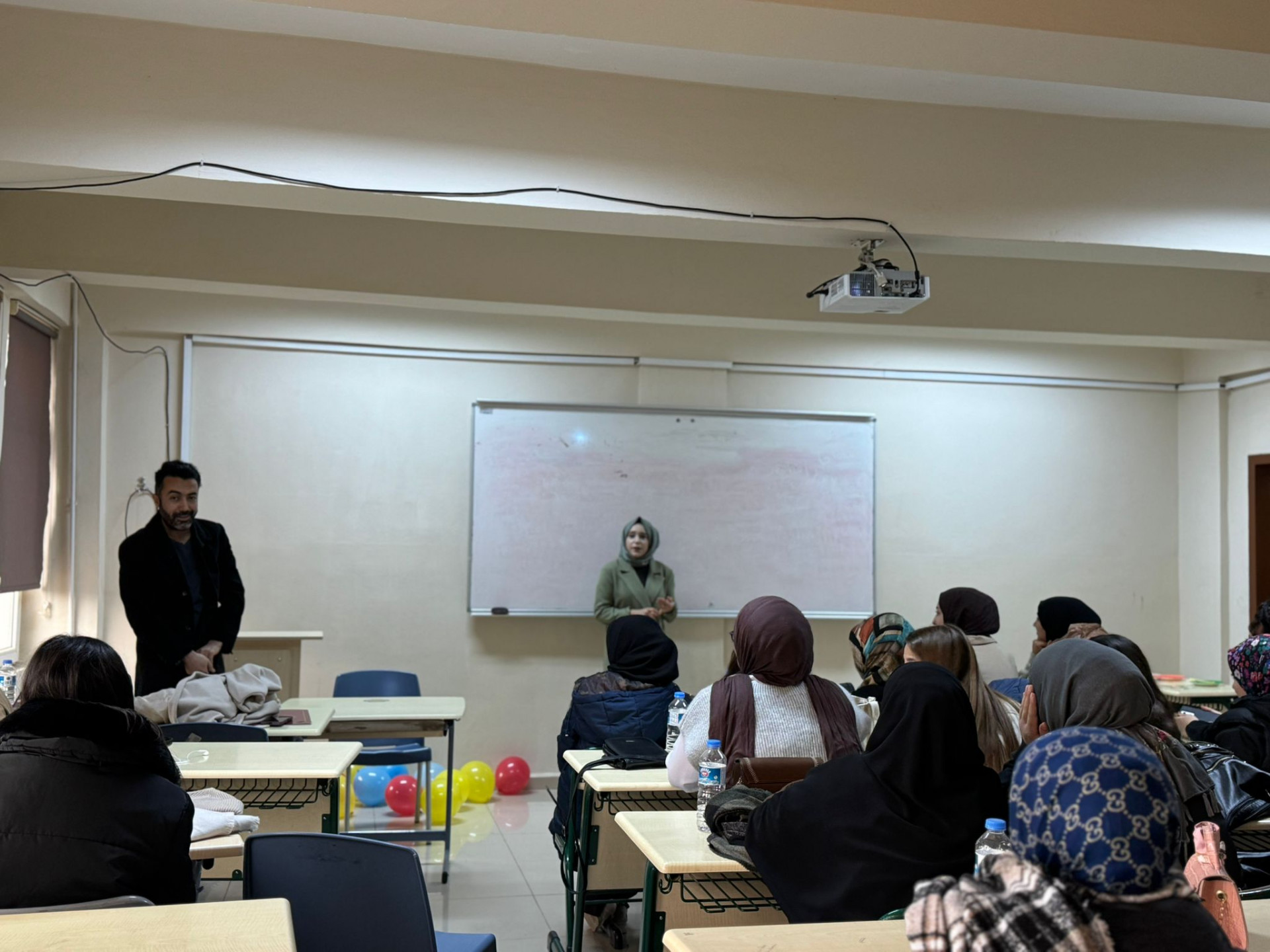 2023-2024 eğitim öğretim yılı Çocuk Gelişimi Programı mezunlarımızdan bölüm ikincisi İslim DURMAZ, okulumuzu ziyaret ederek Çocuk Gelişimi 1.sınıf öğrencilerine "Çocuk Gelişimi Çalışma Alanları ve Mesleki Deneyim" konusunda bilgilendirmede bulundu ve öğrencilerimizin sorularını yanıtladı. Şu an aktif olarak öğretmenlik yapan İslim DURMAZ, okul öncesi kurumlarına başvuru/giriş sürecinde adayları bekleyen süreç hakkında deneyimlerini aktardı.