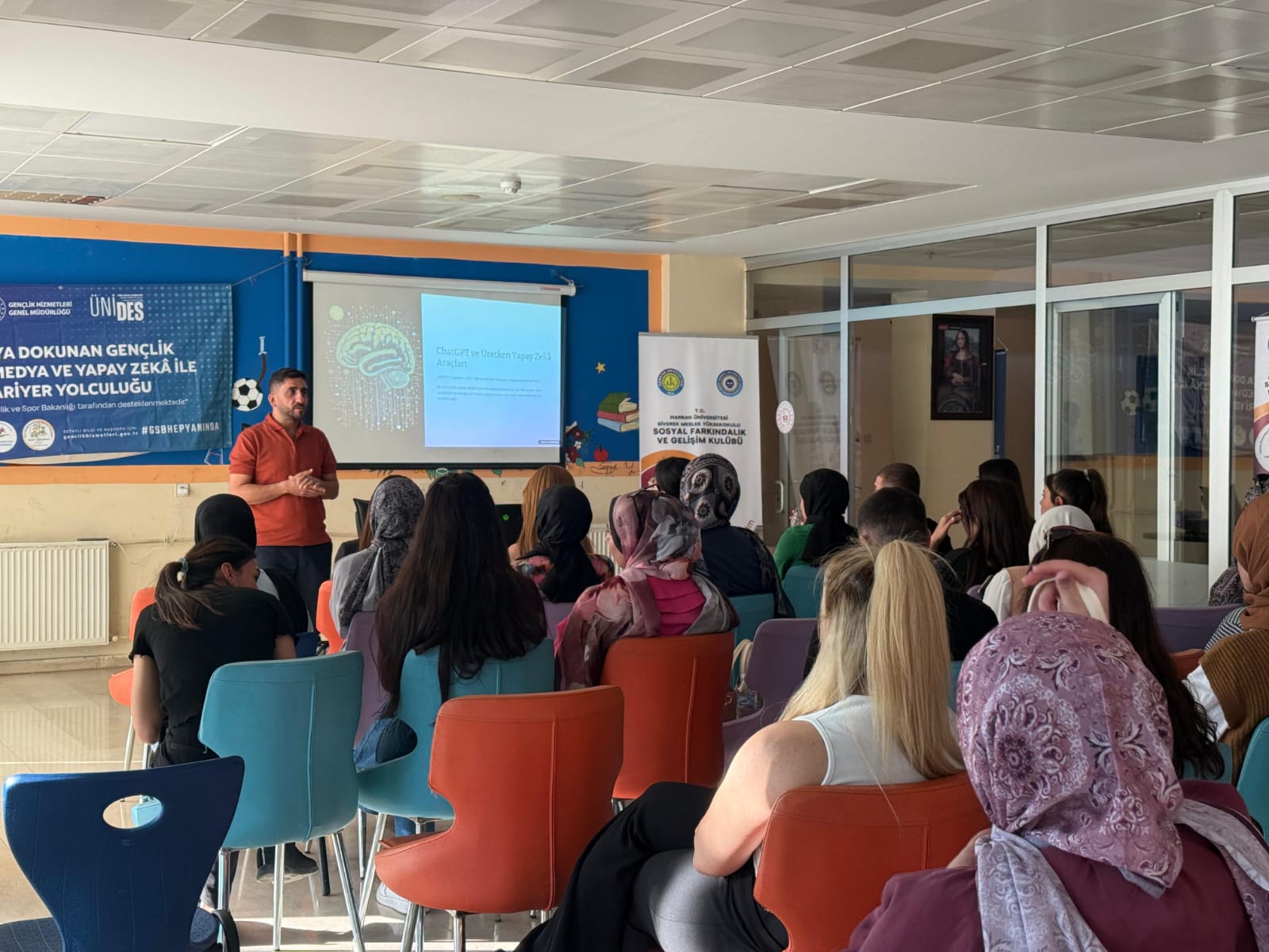 Çocuk Gelişimi öğrencilerimizin kurduğu ve yönettiği Sosyal Farkındalık ve Gelişim Kulübü'nün, Eyyüp Cenap Gülpınar Gençlik Merkezi paydaşlığında ÜNİDES 4. Dönemi kapsamında desteklenen “Zekâya Dokunan Gençlik: Dijital Medya ve Yapay Zekâ ile Kariyer Yolculuğu” projemizin ikinci gününde gençlerle yeniden bir araya geldik.