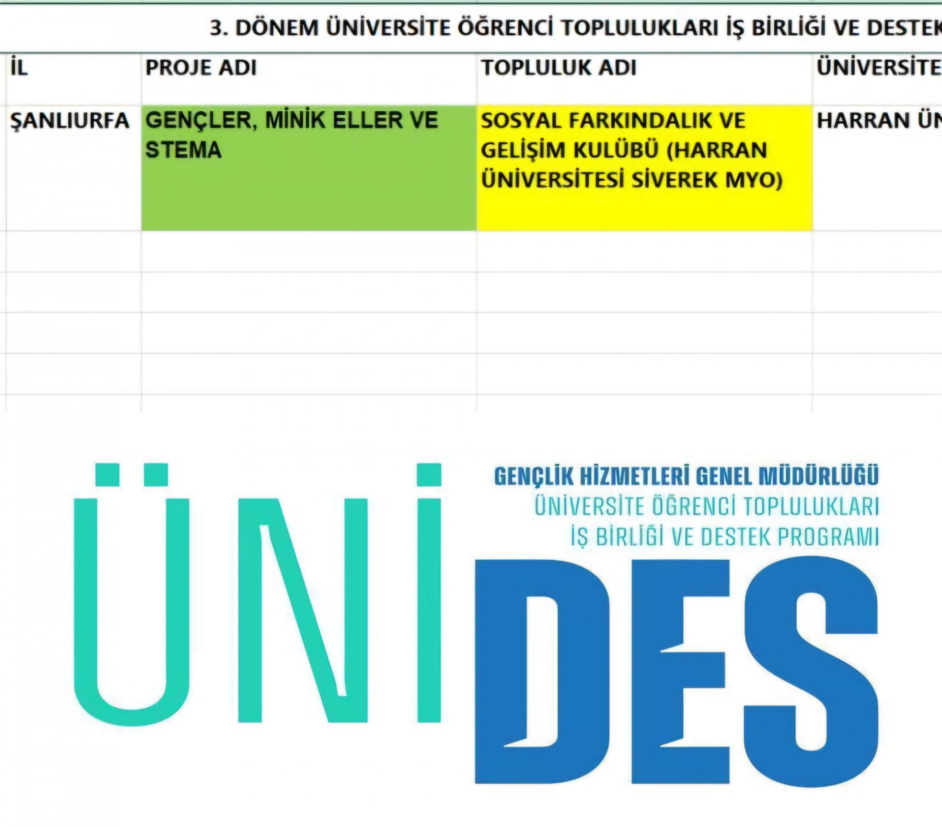 Okulumuz Sosyal Farkındalık ve Gelişim Kulübü Gençlik ve Spor Bakanlığı ÜNİDES Projeleri Kapsamında Destek almaya Hak Kazandı.