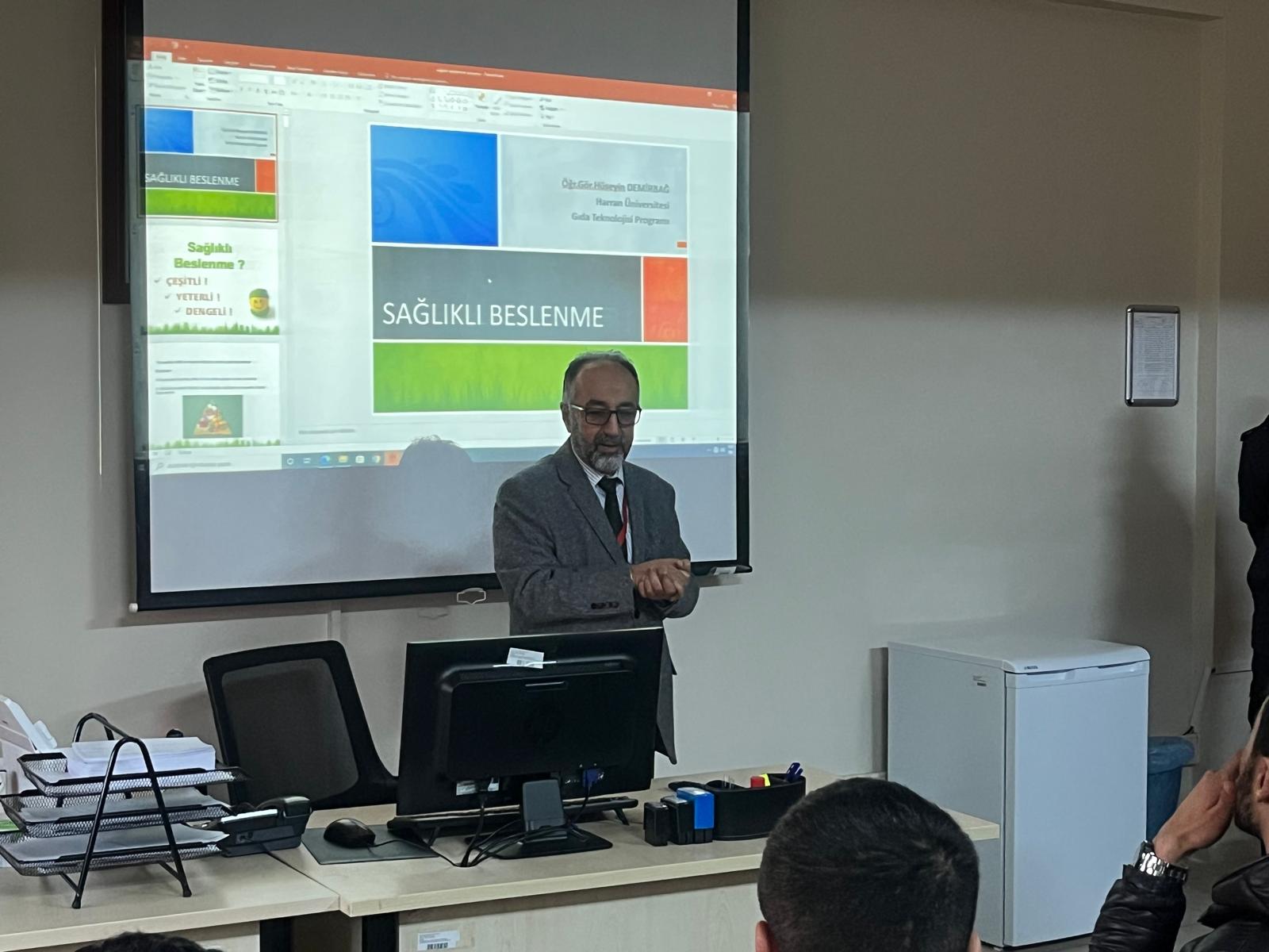 Üniversitemizin Siverek Cumhuriyet Başsavcılığıyla yaptığı protokol çerçevesinde Meslek Yüksekokulumuz Gıda Teknolojisi Programı Öğretim Görevlisi Hüseyin DEMİRBAĞ tarafından 14.02.2025 tarihinde Siverek Açık Cezaevinde kalan tutuklulara "Sağlıklı ve Dengeli Beslenme" konusunda seminer verildi.