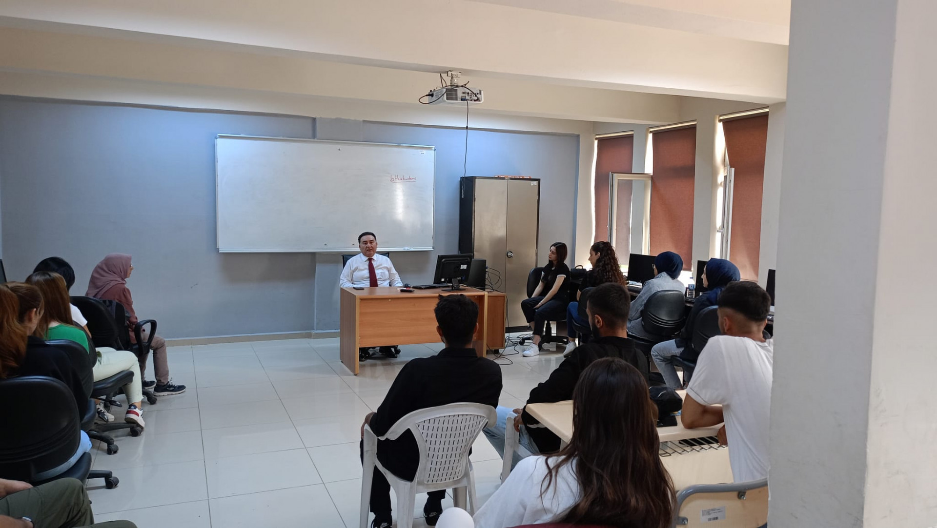 Uyum haftası sürecinde Müdürümüz Doç.Dr. Mehmet Ragıp GÖRGÜN, Bilgisayar Programcılığı 1.sınıf öğrencileri ile bir araya geldi. Üniversitemiz ve okulumuz hakkında, öğrencilerin merak ettiği soruları cevaplayan Müdürümüz, öğrencilerle eğitim öğretimin işleyişi hakkında sohbet etti.