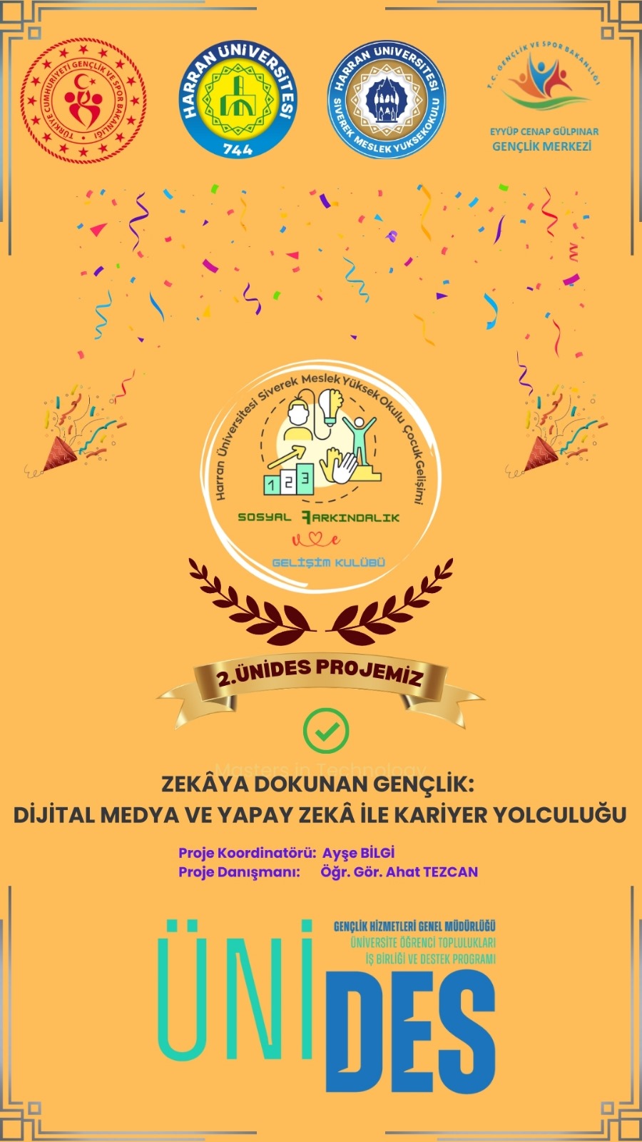 Harran Üniversitesi Siverek Meslek Yüksekokulu Sosyal Farkındalık ve Gelişim Kulübü, gençleri dijital çağın gereklilikleriyle buluşturmak amacıyla dikkat çekici bir projeye imza attı. “Zekâya Dokunan Gençlik: Dijital Medya ve Yapay Zekâ ile Kariyer Yolculuğu” başlıklı proje, ÜNİDES 4. Dönem kapsamında hayata geçirildi.