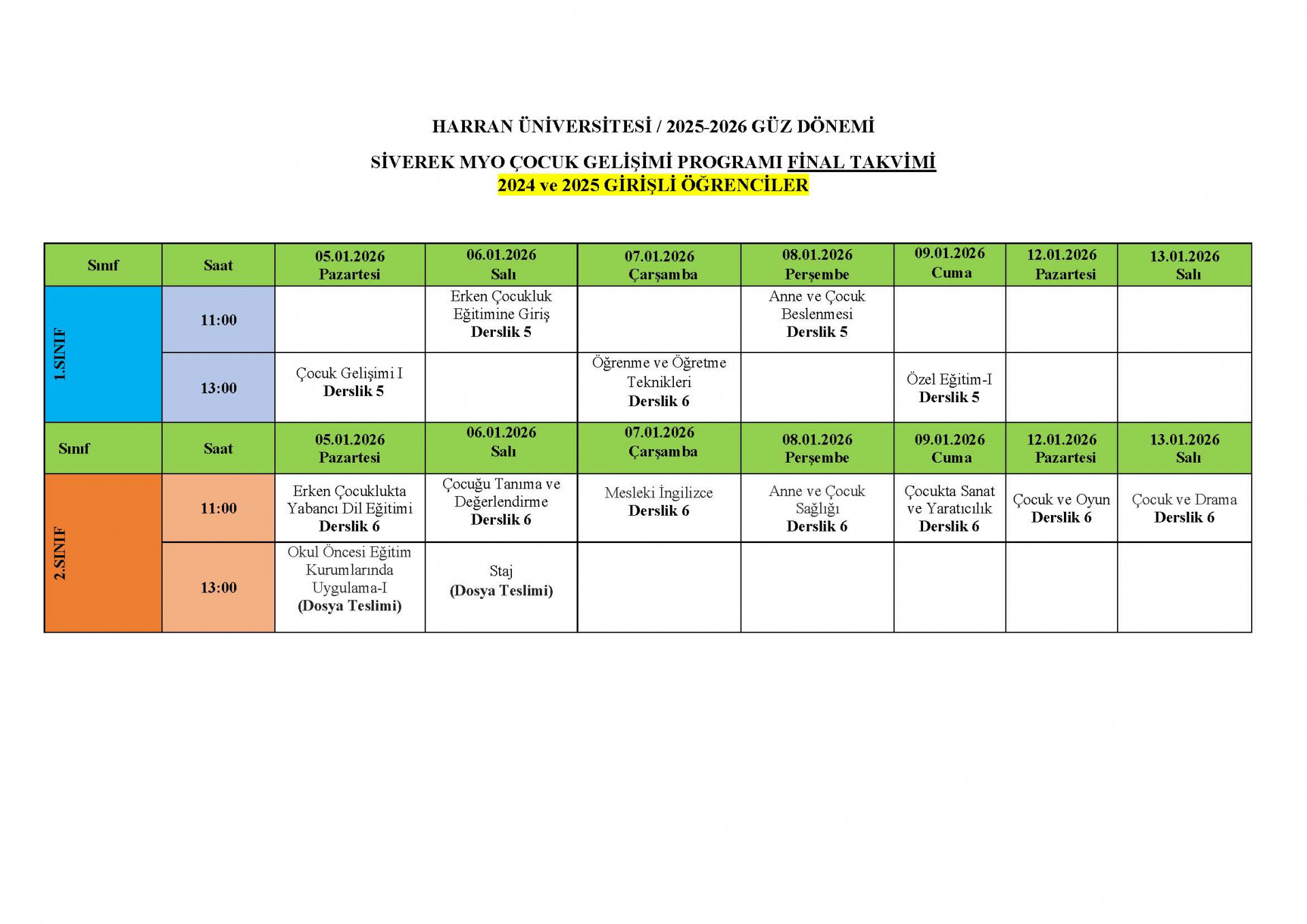 2025/2026 GÜZ DÖNEMİ FİNAL VE BÜTÜNLEME SINAVLARI