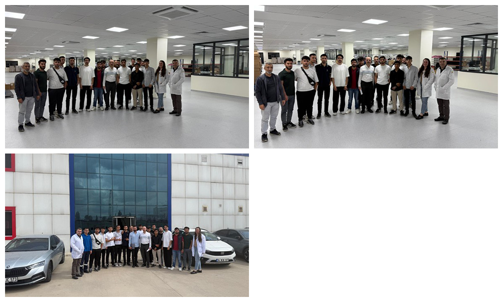 - Elektrik ve Elektronik Teknolojisi programı öğrencileri ile Dr.Öğr.Üyesi F.Zuhal ADALAR, Öğr.Gör.Abdulkadir AKARSU ve Öğr.Gör.Rüknettin IŞIK'ın katılımışla, Şanlıurfa Organize Sanayi Bölgesi'nde bulunan EGEBANT fabrikası 26.03.2025 tarihinde ziyaret edilmiştir. Yetkililer tarafından katılımcılara üretilen ürünler ve üretim teknolojileri konularında bilgiler verilerek fabrika departmanları gezdirilmiştir.