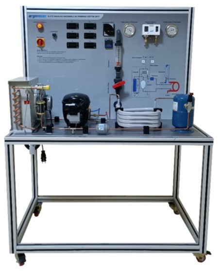 Dış ortam havasından elde edilen enerjinin suya aktarılması prensibiyle çalışan ısı pompası sistemlerinin çalışma mantığını ve temel bileşenlerini uygulamalı olarak öğretmek amacıyla kullanılan eğitim amaçlı deney düzeneğidir.