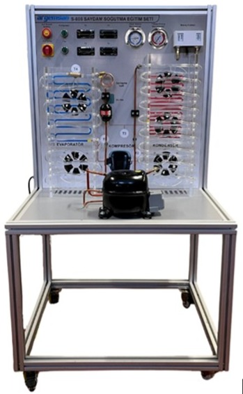 Soğutma çevriminde gerçekleşen akış ve faz değişim süreçlerinin şeffaf yüzeyler sayesinde gözlemlenmesini sağlayarak soğutma sistemlerinin çalışma prensibini eğitim amaçlı gösteren uygulamalı öğretim düzeneğidir.