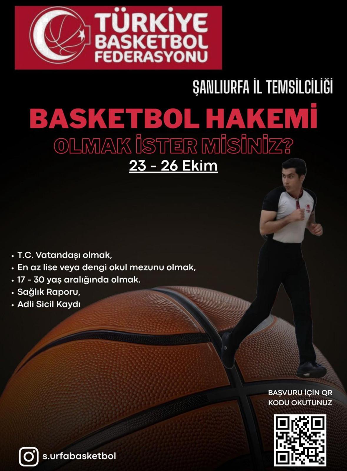23-26 Ekim 2025 tarihlerinde basketbol hakemlik kursu açılacaktır. Kayıt ve daha fazla bilgi için ilandaki fotoğraf altında bulunan QR kodu kullanarak ilgili bağlantıya ulaşabilirsiniz.