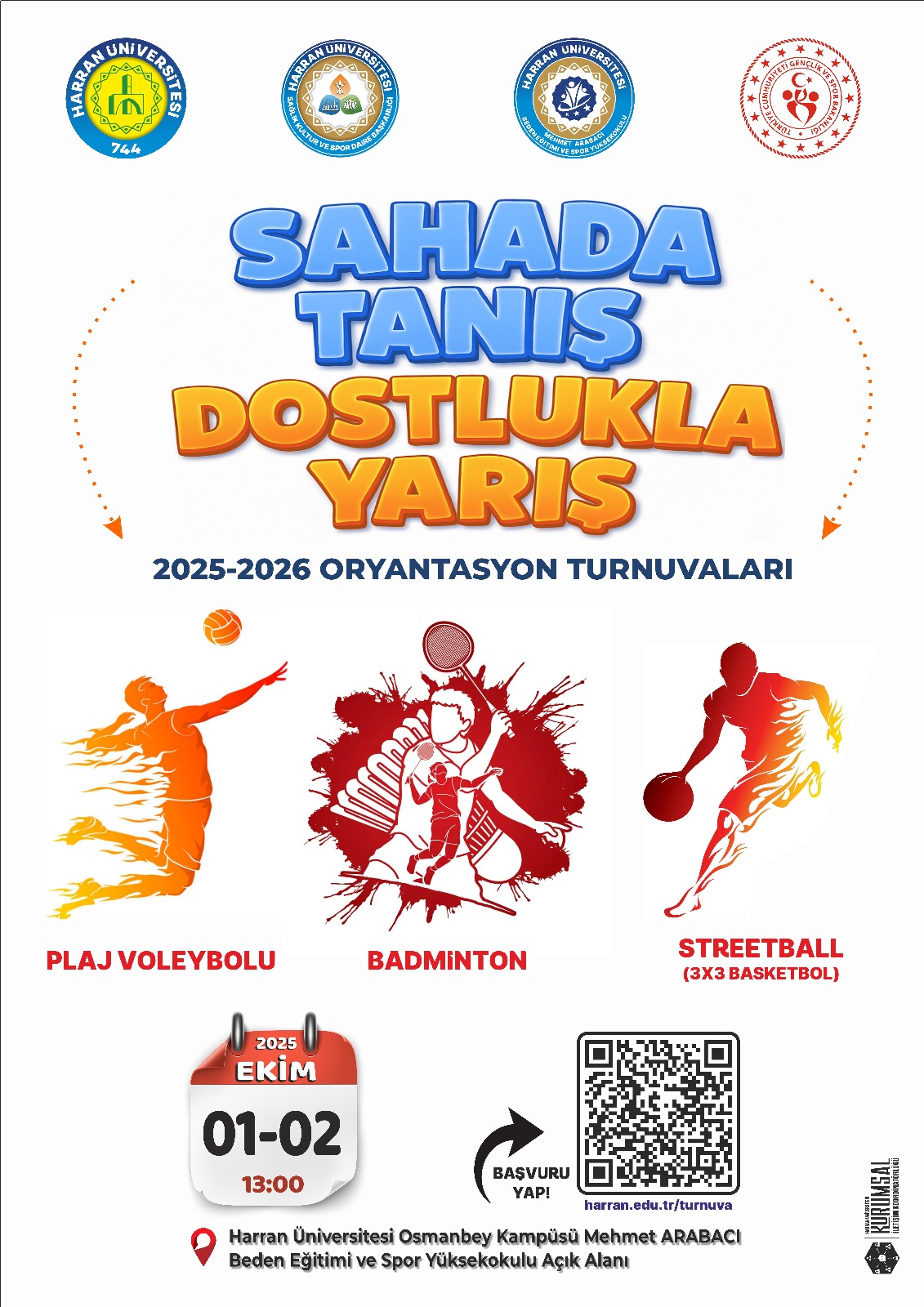01-02 Ekim Tarihlerinde Sağlık Kültür ve Spor Daire Başkanlığı tarafından düzenlenen ve Yüksekokul olarak tesis sağlama ve spor stantlarının kurulumunda iç paydaşımız olan SKS birimi ile iş birliği ile etkinliklerden görev almaktayız. 2025 Yılı oryantasyon Etkinliklerine tüm öğrencilerimizin katılımını bekliyoruz. Turnuva katılımı için kayıt yapmayı unutmayınız
