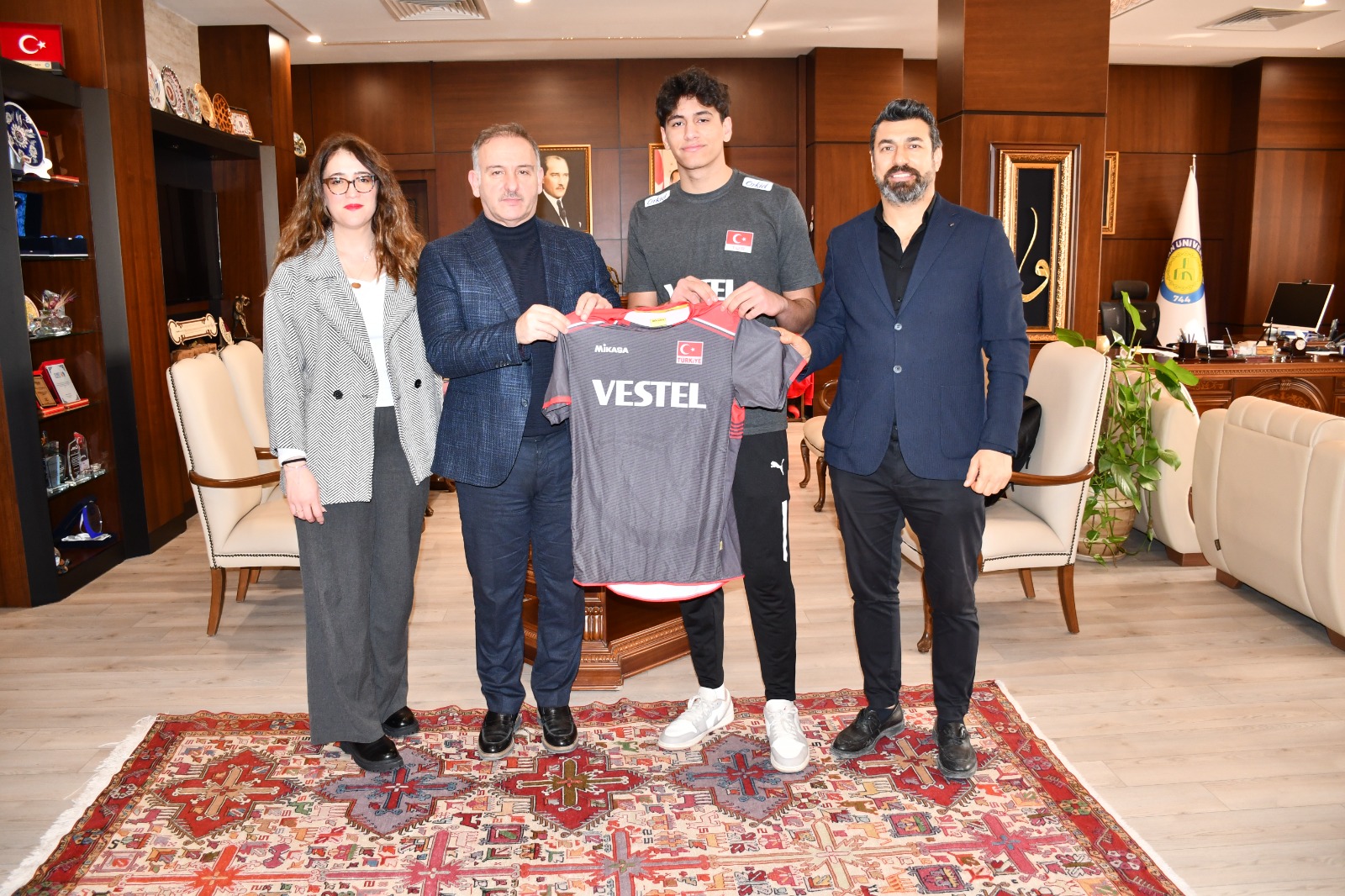 Turnuva sonrası memleketi Şanlıurfa’ya gelen milli sporcu, Harran Üniversitesi Rektörü Prof. Dr. Mehmet Tahir Güllüoğlu’nu ziyaret ederek U18 Milli Takım formasını hediye etti. Ziyarette BESYO Müdürü Prof. Dr. Yakup Aktaş ile BESYO Müdür Yardımcısı ve Bölüm Başkanı Dr. Öğr. Üyesi Cansu Çoban da hazır bulundu.